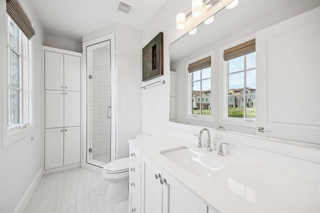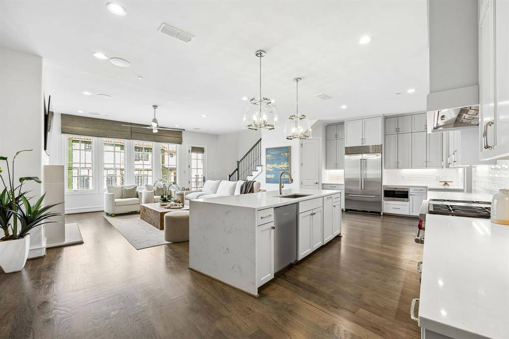Exquisite, timeless elegance meets modern luxury in this custom waterfront townhouse, perfectly positioned with serene canal views in the coveted Westlake Entrada community. This European-inspired residence offers a lifestyle defined by beauty, comfort, and sophistication. Behind a private gated entrance, every detail has been thoughtfully considered. An arched iron gate opens to a peaceful courtyard, blending indoor elegance with outdoor charm. The entry flows effortlessly into bright living and dining spaces, where custom millwork creates understated grandeur. Wide-plank white oak floors, designer lighting, and curated finishes welcome you inside. A cast stone fireplace anchors the living area, complemented by calming water views. At the heart of the home is a chef's kitchen designed for daily life and entertaining. This open-concept space features custom cabinetry throughout, premium appliances, and generous counter space, seamlessly integrating with the living and dining areas to create an inviting atmosphere. Ample storage and thoughtful design make it perfect for culinary creativity and gathering with family and friends. A private elevator and staircase provide easy access to the upper level, where the primary suite and additional living spaces await. The primary suite features French doors opening to a spacious balcony shared with the adjacent loft-style game room, overlooking the canal and water features for tranquil views. The primary bath includes a soaking tub, dual vanities, a walk-in shower, and a spacious closet. Three guest bedrooms each feature en-suite baths, offering privacy and comfort. Additional highlights include two distinct living areas, a three-car climate controlled garage with epoxy floors, and a Savant AV system enhancing the living experience. Situated on a low-maintenance lot, with access to Carroll ISD and Westlake Academy (IB School), this home offers refined living minutes from Southlake Town Square, Lifetime Fitness and DFW Airport