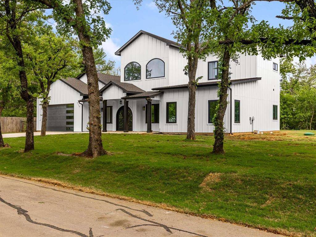 Construction Completed March 25, 2026! New Construction! No HOA! Modern Barndominium Showstopper within walking distance of Lake Grapevine in highly desired Flower Mound, Tx, Built in 2026! This home turns heads with its curb appeal & charm. Set in a quiet 75 acre, tight-knit community that backs to Corps of Engineer Land. Enjoy direct access to scenic hiking and biking trails, plus a private neighborhood boat ramp for the lake. Inside, you're welcomed by a spacious open floor plan with soaring 22ft ceilings. Downstairs has double master peaceful suites with full spa like bathrooms. Front and back patio porch shaded by majestic oak trees straight out of a magazine. European Style Windows That Open, Tesla Charger, All Closets Are Custom, Custom Trim Walls, Schlage Matte Black Door knobs, Delta Matte Black Finishes, 2-50 gallon Water Heaters, Elongated Toilets, 6ft Bathtubs, 24x48 porcelain Bath Tile, Sound Proof Walls, Modern Rail System, Office-Flex-Playroom, All Wood Cabinets with Soft Close, 36 in Electric Stove Range, Double Oven, Quartz Counter Tops, Rigid Luxury Vinyl Floors 30yr waterproof, Wired For Cat 6, State of the Art Turner 500 Gallon Per Day Septic System, Sprinkler System, Wood Burning Fire Place.