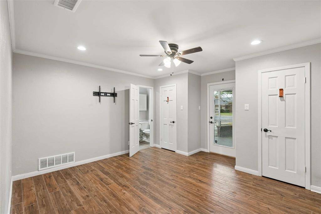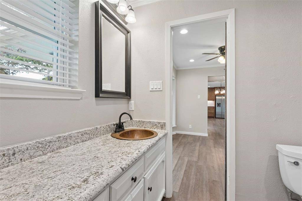 Thoughtfully designed, this fully renovated Bedford home delivers a rare combination of high-end craftsmanship, modern functionality, and effortless flow. At the heart of the home, the kitchen is a true showpiece, featuring custom solid oak cabinetry, granite countertops, and a stunning nine-foot island designed for gathering, entertaining, and everyday living. Under sink water filtration and updated appliances add both convenience and quality, while the seamless connection to surrounding spaces enhances the home's livability.Each of the three bedrooms features custom tiled showers and built-ins. Split-bedroom layout with a private en suite bath offers ideal separation and comfort for guests or multi generational living. A dedicated office flex space adds versatility and can easily be converted back to a fourth bedroom. Electrical wiring has been updated with copper, sewer lines were tested in 2025 and iron pipes were lined with an epoxy resin coating which carries a 50 year warranty. Upgraded attic insulation, a Class 3 hail-resistant roof 2024, New double hung windows with low E glass, metal front door with Andersen storm door. The backyard is designed for ease and enjoyment with an extended covered patio, premium turf, mature shade trees, a hot tub, gazebo, storage shed, and iron gate for side entrance. Enjoy the charm of a well-established community with mature trees, minimal traffic, and the convenience of being walking distance to Generations Park Boys Ranch offering trails, green space, and a true neighborhood feel.
