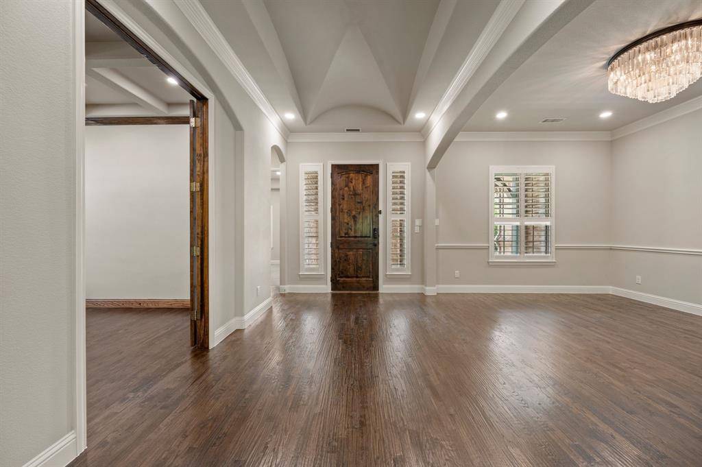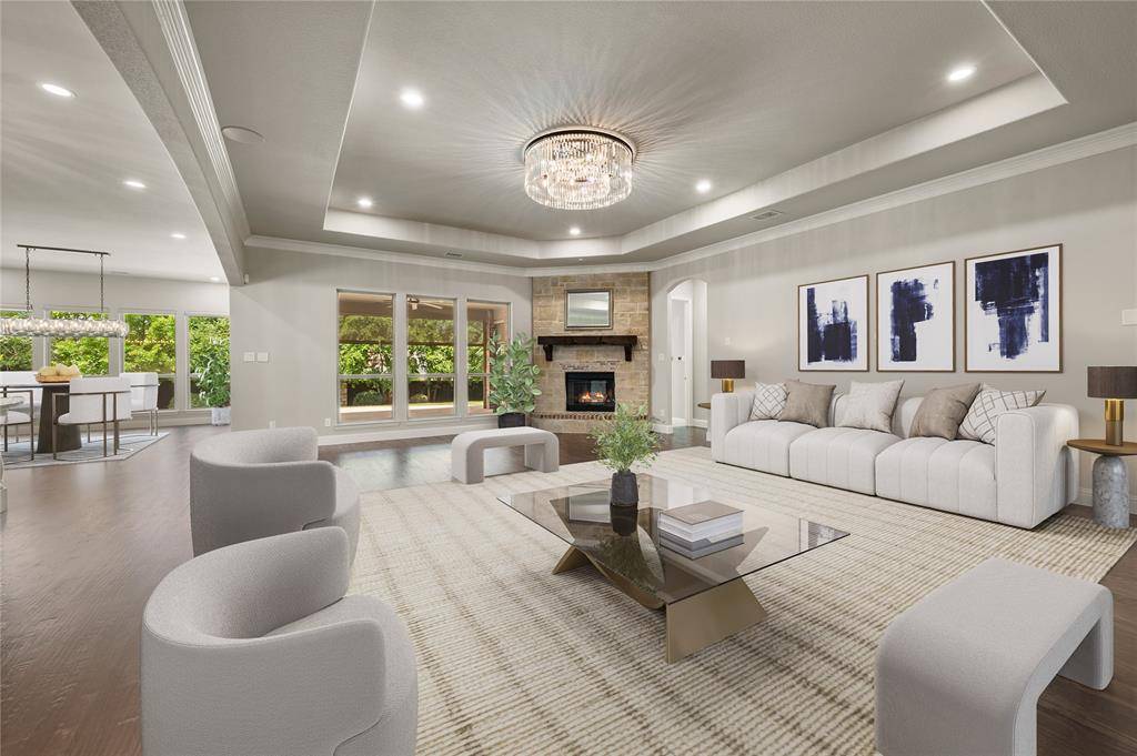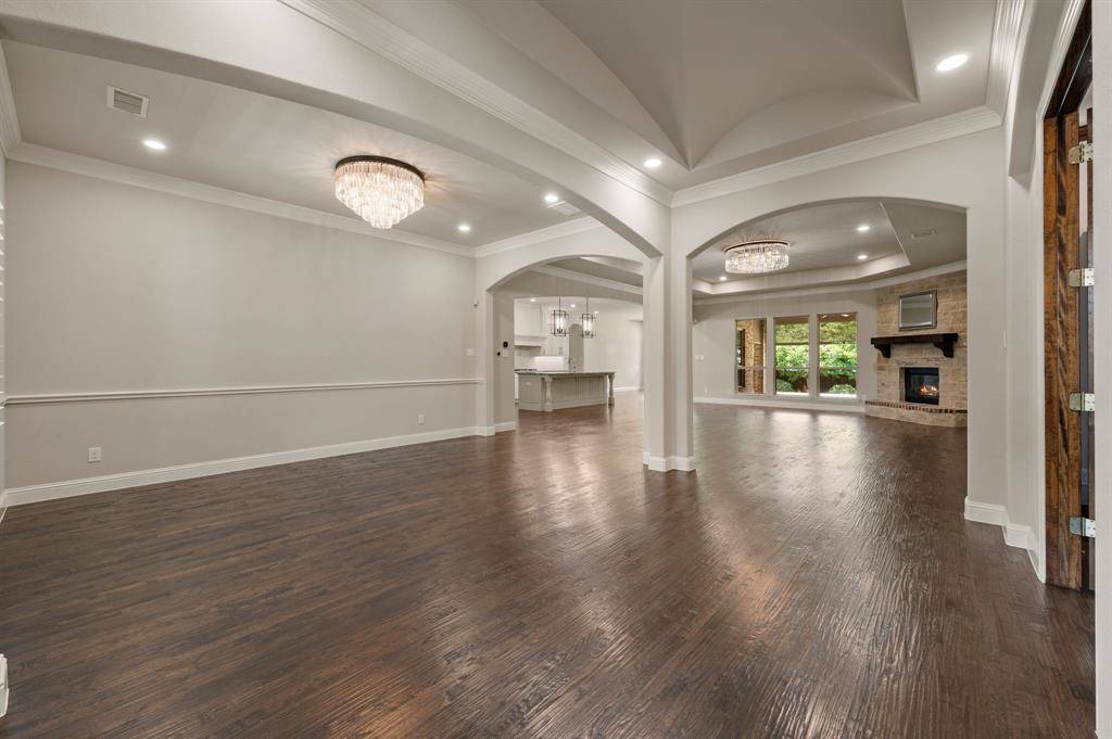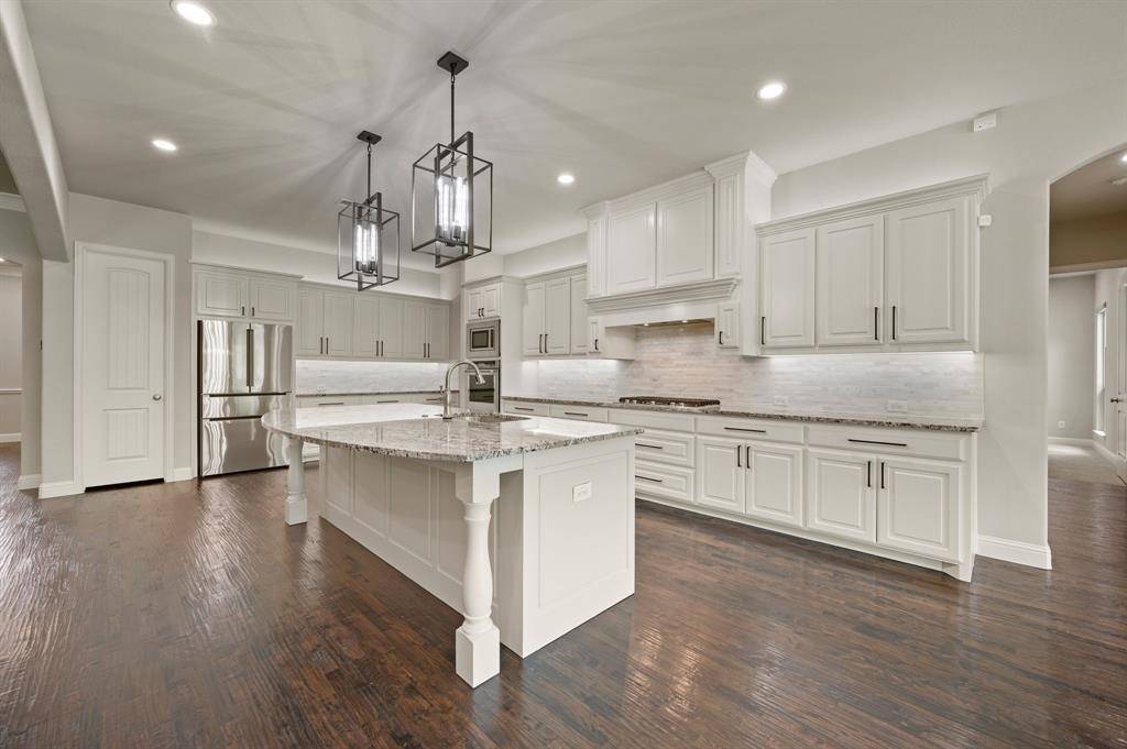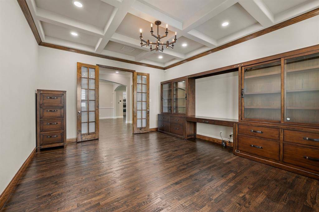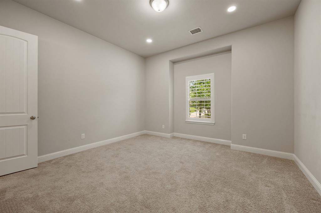 Sophisticated and timeless, single-story custom home in Carillon and Carroll ISD just minutes away from the much anticipated new Carillon Parc development, community pool, several neighborhood parks, playground, lakes for catch-and-release fishing and easy access to jogging and biking trails. The flexible and open floor plan offers 4 bedrooms all with en-suite baths and walk-in closets, a spacious office that could be another living area, media room, designer lighting, generous room sizes, mudroom with cubbies, pristine hardwood flooring and 3 car garage – single car is air-conditioned. The bright kitchen offers transitional design with gas cooktop, double ovens, island with seating, stainless steel appliances and large walk-in pantry. The media room comes fully equipped and offers a quiet retreat away from the other living areas and bedrooms. The oversized primary suite offers a serene retreat with remote room darkening shades, private access to backyard, dual vanities, double shower, soaking tub and spacious walk-in closet. Utility offers room for a refrigerator (included) and sink. The covered patio offers remote controlled screens plus a cozy fireplace for relaxing with family and friends. A short drive to Southlake Town Center for premium shopping and restaurants and to DFW airport.