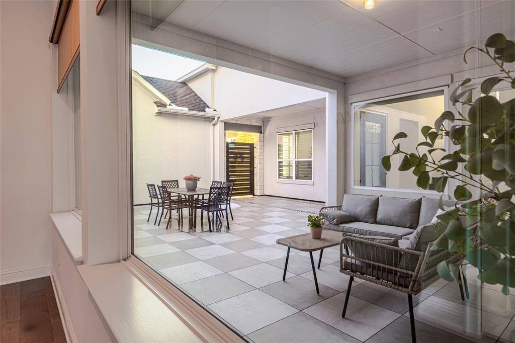 Experience luxury open-air living in this thoughtfully designed home featuring seamless indoor-outdoor living. A striking central courtyard with a covered outdoor dining area creates the perfect space for entertaining. The great room opens to both the courtyard and backyard patio through dual sliding doors, enhancing the natural flow for gatherings and everyday living.