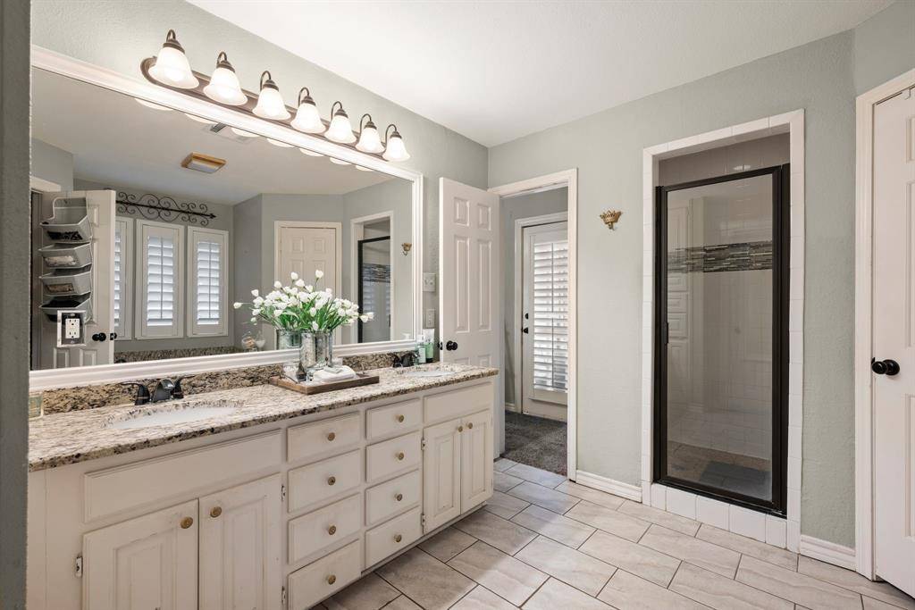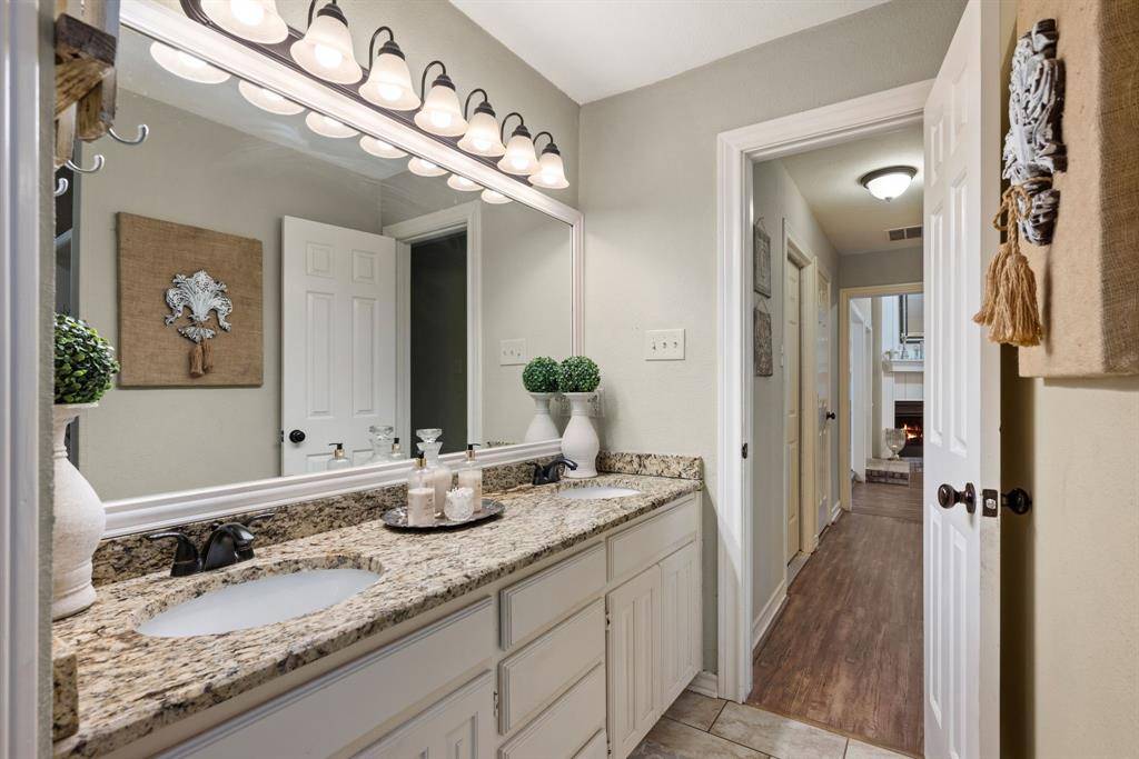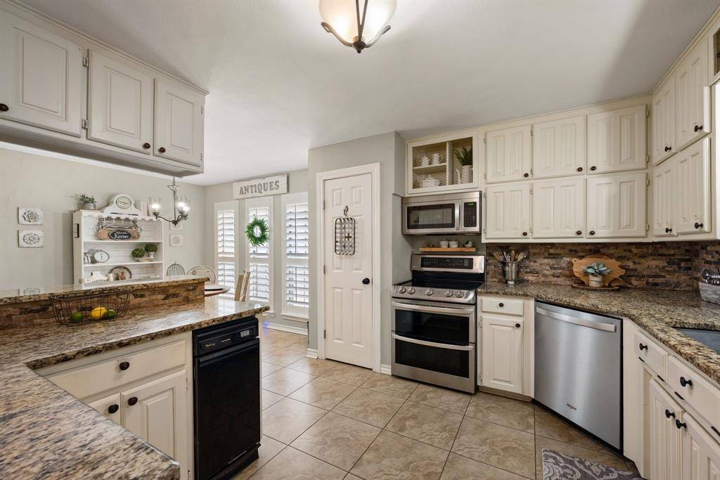 Over $130,000 in upgrades—including a new roof, new gutters, new plumbing, and fresh interior paint—make this beautifully updated 3-bedroom, 2.5-bath home truly move-in ready. Timeless charm meets modern comfort in this spacious residence, perfectly situated in a quiet, welcoming neighborhood. Inside, you'll find two generous living areas and two dining areas, ideal for both everyday living and entertaining. The main living room features a cozy fireplace with built-in shelving, while the secondary living room offers a wet bar and stunning views of the backyard—perfect for hosting or relaxing in style. Exposed brick accents and thoughtfully curated finishes add warmth and character throughout the home, complemented by abundant natural light filtering through classic plantation shutters. The kitchen is both functional and elegant, featuring white cabinetry, granite countertops, a new double oven and microwave, and convenient access to two separate dining areas, offering flexibility for casual meals or formal gatherings. The primary suite is a true retreat, complete with direct access to the patio. The spacious en-suite bath boasts two walk-in closets, dual vanities, a walk-in shower, and a soaking tub. Two additional bedrooms complete the interior layout. Enjoy the split living floorplan where two spacious bedrooms complete the space. The secondary bathroom features granite counters and shelving! Step outside to your private backyard oasis, where a sparkling, recently replastered pool is-perfect for summer entertaining or peaceful weekend lounging. Additional upgrades include a new electrical panel, new garage door, updated thermostat, and a new HVAC air handler. With its seamless indoor-outdoor living, stylish updates, and fantastic location, this home truly has it all. Don't miss the opportunity to make it yours!