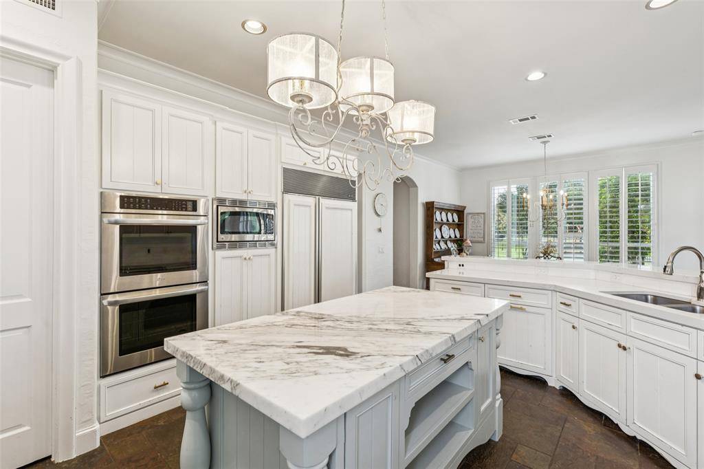 Tucked away in the prestigious gated community of The Landing, this exquisitely maintained estate rests on a private, tree-lined 2-acre lot with sweeping views of a stocked pond, your own serene countryside escape just minutes from Lake Grapevine. From the moment you arrive, the circular driveway and grand wooden entry doors set the tone for timeless elegance. Inside, soaring ceilings, floor-to-ceiling windows, and an abundance of natural light highlight the home's refined finishes and thoughtful updates. Designed for both everyday living and upscale entertaining, the residence features a gourmet kitchen with custom white cabinetry, a built-in refrigerator, double ovens, and striking marble and quartz 2-inch countertops. Hand-scraped hardwood floors run throughout all bedrooms and main living areas, complemented by a wine cellar, walk-in pantry, and generous storage throughout. The guest suite includes private exterior access, perfect for visitors or multigenerational living, while the elegant primary retreat offers a sitting area with a dual-sided fireplace, a spa-like bath, an oversized walk-in closet with built-ins, and direct access to the backyard. Additional spaces include a game or media room, formal dining, home office, and multiple living areas, all connected by two staircases that enhance both functionality and style. Smart home upgrades such as a radiant barrier, whole-house surge protector, new air ducts, and a high-efficiency sprinkler system add modern convenience and energy efficiency. Outdoors, the expansive backyard, extending to the middle of the tranquil pond—offers endless possibilities to create your dream outdoor oasis, whether you envision a resort-style pool, outdoor kitchen, or peaceful garden retreat. With its rare blend of privacy, elegance, and modern comfort, this Holmes-built masterpiece offers the ultimate in luxury living. Schedule your private tour and experience the magic of The Landing lifestyle.