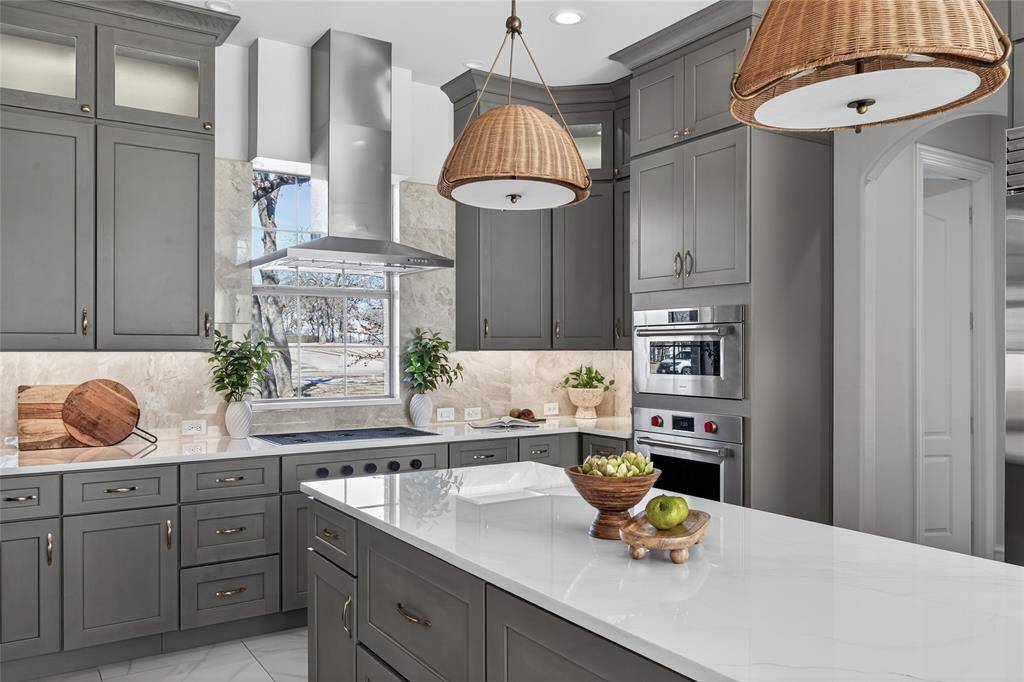 The fully remodeled kitchen is a showpiece, thoughtfully redesigned with premium Wolf appliances, Sub-Zero refrigeration, and Cove dishwasher, convection and steam ovens, quartzite countertops in kitchen, island and butler pantry stoneguard protected. Bonus is a stunning Wolf coffee bar—perfect for elevated daily living and entertaining alike. Open-concept living spaces flow seamlessly, offering both elegance and functionality, while a designated study provides an ideal work-from-home retreat.