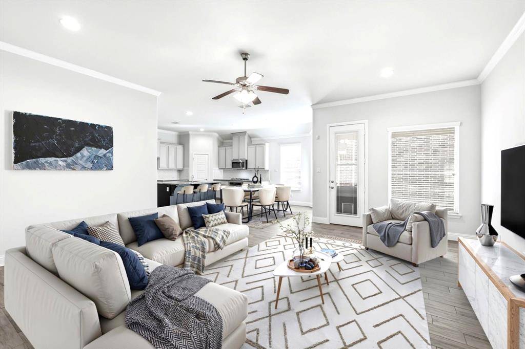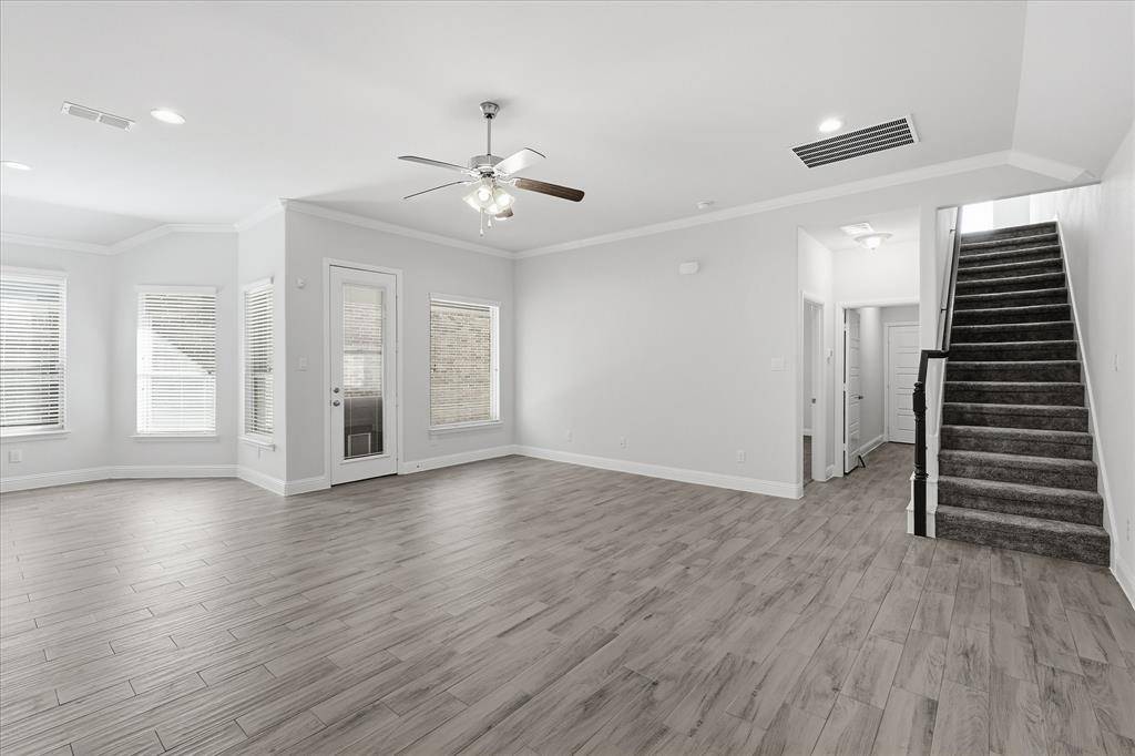 THIS HOME IS VERY low-maintenance, zero-lot-line FULL sized home offering complete privacy and a small patio backyard area NO GRASS TO MOW!! 4 BEDROOMS, 3 FULL bathrooms, 3 LIVING AREAS including a DOWNSTAIRS GUEST bedroom and FULL BATH. Fresh gray and white interior paint, tiled flooring and brand-new carpeting, 2 inch blinds makes this home BETTER THAN NEW!! OPEN concept living area is ideal for entertaining and everyday living. A dedicated home office which can double as a formal dining room. The primary suite is thoughtfully located downstairs at the rear of the home, offering a quiet retreat away from street noise and exterior lighting. Upstairs, you'll find two generously sized bedrooms and a LARGE GAMEROOM perfect for family or guests. Open kitchen features granite countertops, eating island, ample cabinetry, pantry, and a gas cooktop—perfect for cooking and gathering. Step outside to the private back patio with natural gas outlet for a grill. Stonework provides easy upkeep with the option to allow grass to grow for pets or play. Additional highlights include a rear entry garage for additional privacy with seller installed extra large overhead shelving and a work area for a bench and storage. BETTER THAN NEW ULTRA clean. Top-rated Argyle ISD schools. New Tom Thumb opening in March with all the additional restaurants and shops, Tankless on demand gas hot water heater. This home combines comfort at a GREAT Size, style, and an exceptional community lifestyle—Find out WHY Harvest is a MCSAM AWARD WINNING COMMUNITY every year since 2012! HARVEST is a totally unique, highly sought-after Agri-Hood designed for a healthy and connected lifestyle with community garden, sports facilities, Harvest restaurant and gift shop, Multiple pools for residents only, Dog Parks, Walking Trails, Fitness Centers and countless neighborhood amenities and events that make Harvest truly special. NOTE The ZILLOW Tour Colors are incorrect, this is a VERY GRAY & white house!!!
