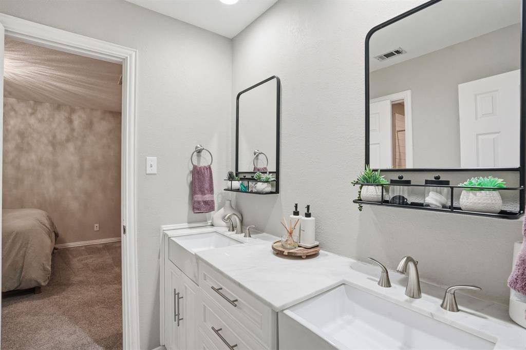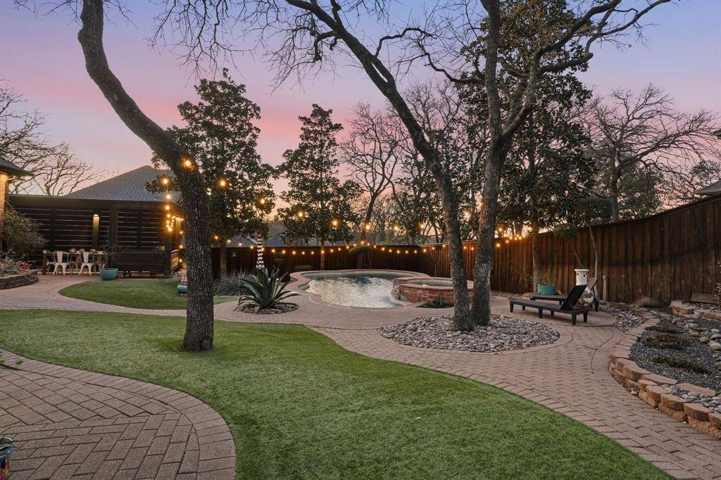 Located in the prestigious Williamsburg Estates, this one-of-a kind property showcases exceptional attention to quality and modern living. This home sits on a lush .386-acre lot and offers 2966 square feet of luxury living, showcased by unparalleled comfort and designer touches. Wonderfully maintained, this open concept home has undergone impressive renovations and upgrades. The functional floor plan boasts two dining areas, a chef-inspired kitchen, two living rooms, four bedrooms, three remodeled bathrooms, and a utility area. The flexible floor plan easily allows one of the bedrooms to serve as a dedicated study. The private backyard is a serene getaway with an extensive patio overlooking a play pool with new Pebble Tec finish surrounded by premium turf and a beautiful pergola for outside dining and entertaining. Inside, the home feels warm and welcoming with Travertine and solid wood floors, gracious windows, designer fixtures, custom millwork, new exterior and interior lighting and wrought iron spindles on an impressive staircase . The gourmet kitchen is outfitted with stately concrete counters, top-of-the-line Viking Professional appliances including an 8-burner gas range, upgraded cabinetry and a charming breakfast nook before windows with French doors leading to a side patio. Located away from the traffic areas of the home, the primary suite is a peaceful escape with lovely windows, wood floors and a spacious remodeled bathroom. This home is more than just a place to live, it's a lifestyle. Whether you're entertaining guests, enjoying a peaceful pool day, or relaxing indoors, this home offers an unmatched blend of a functional floor plan, custom upgrades and designer touches throughout every room. This home feeds the award-winning Keller ISD and is located a short commute to DFW International Airport, local eateries and upscale shopping.