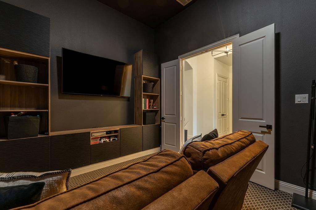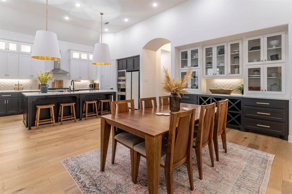 The home features four bedrooms along with a dedicated study and private theatre, creating flexible spaces ideal for today's buyers who value both functionality and everyday comfort. The living and dining areas are warm and inviting, highlighted by dual fireplaces that add a refined, upscale touch. Thoughtful details such as elegant trim work and designer pendant lighting elevate the interior throughout.