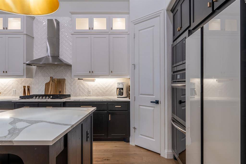 The primary suite is a true retreat, offering a spacious bedroom and an oversized custom walk-in closet designed for both style and organization. The single-story layout provides ease of living while maintaining a well connected, open feel.