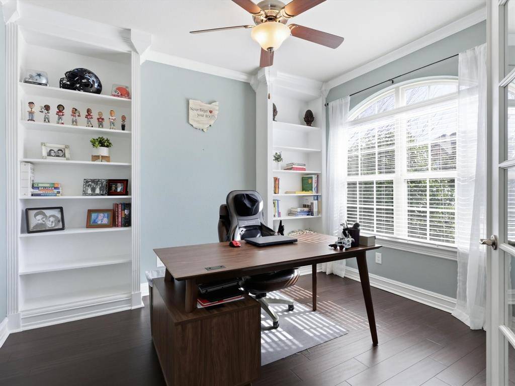 The main level features a private primary suite with added bonus room perfect for a nursery, workout space or additional office. The secondary bedroom downstairs has it's own en-suite bath—perfect for guests or a mother-in-law suite. A dedicated office with French doors and built-in shelving provides the perfect work-from-home space.