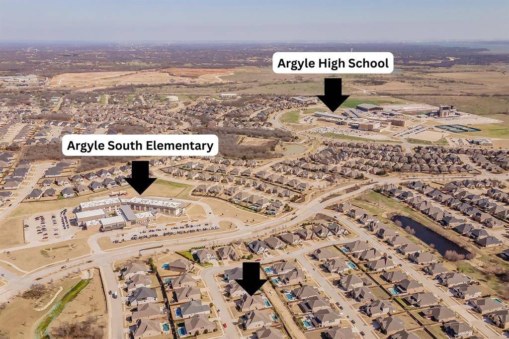 Welcome to 11609 Little Elm Creek Road in Canyon Falls – Argyle ISD! Built by Drees Homes, this exquisite 3,980 sq ft home features 4 bedrooms, 4 baths, a study, game room, media room, and 3 car garage. The grand entry showcases a breathtaking spiral staircase and beautiful flooring throughout the main living areas. The study is perfectly situated off the entry. The living room, kitchen, and dining area flow seamlessly in an open-concept layout. The living room features a stunning Heatilator fireplace, while the kitchen boasts a large island, gorgeous countertops, abundant cabinetry, and 2 pull-out spice racks. The dining area easily accommodates an oversized table. A desk area and walk-in pantry sit just off the kitchen. Tucked away at the back of the home, the primary suite offers a spa-inspired bath with a walk-in shower, soaking tub, and a closet that connects directly to the laundry room with a sink. The kitchen pantry, primary closet, and laundry room all include custom Elfa shelving for exceptional organization. A secondary bedroom and full bath are also located downstairs. Upstairs, the home continues to impress with a spacious game room, media room, and 2 additional bedrooms with 2 baths, including 1 ensuite and 1 that also opens to the hallway for guests. The backyard is perfectly positioned to enjoy breathtaking year-round sunsets. The backyard features a pool and spa with a bubbler and 3 water features, controlled via an app. Other backyard highlights include a covered patio, pergola, and private putting green. Canyon Falls HOA includes 2 resort-style pools, clubhouse with fitness center, playgrounds, splash pad, dog park, and miles of trails, plus front yard lawn maintenance, TV, and internet service. This home is located in the lowest property tax rate in Canyon Falls and zoned to highly rated Argyle ISD, with Argyle South Elementary and Argyle High School within walking distance. Schedule your showing today to experience the ultimate in luxury living!