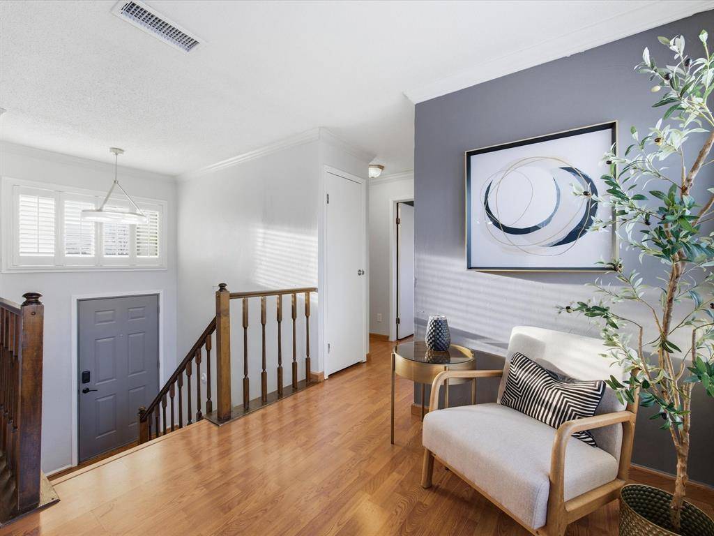 Welcome to this spacious and inviting home tucked away on a quiet cul-de-sac in the heart of Flower Mound offers convenient access to local parks, shopping, dining, and everyday amenities. Step inside to discover a bright and welcoming interior highlighted by an open living area that serves as the central gathering space of the home. Large windows allow natural light to fill the room, while the cozy fireplace creates the perfect atmosphere for relaxing evenings or hosting guests. The beautifully updated kitchen is a true focal point, featuring granite countertops, generous cabinet storage, and a functional layout designed for both daily living and entertaining. A breakfast bar provides additional seating and connects seamlessly with the dining and living areas, making the space ideal for gatherings. The generously sized primary suite is conveniently located on the main level, offering a comfortable retreat complete with a private ensuite bath and walk-in closet. Upstairs, two spacious secondary bedrooms share a full bath, providing flexibility for guests or a home office setup. Outdoor living is equally impressive. The backyard showcases a sparkling in-ground pool surrounded by upgraded landscaping, creating a private oasis perfect for relaxing afternoons or summer entertaining. A covered patio offers a shaded space for outdoor dining or enjoying quiet evenings, while the surrounding yard provides additional room to play or garden. A storage shed adds convenient space for tools and outdoor equipment.