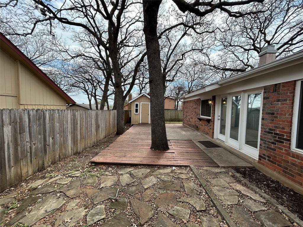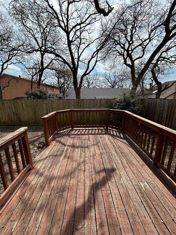 The primary bedroom suite features the same attractive wood flooring found throughout the main living areas, creating a warm and cohesive feel. The low-maintenance backyard includes charming wood decks just off the kitchen and the primary bedroom—perfect for relaxing or enjoying outdoor gatherings. Located within the highly regarded Hurst-Euless-Bedford ISD. Small Pets only.