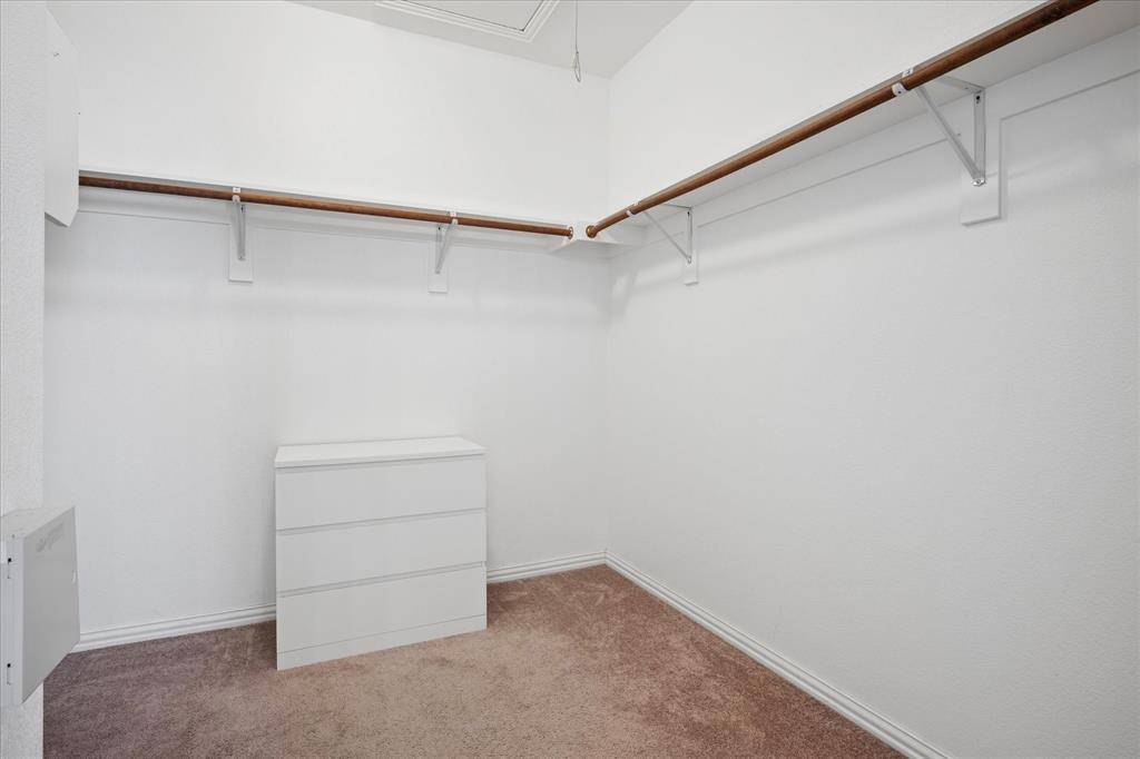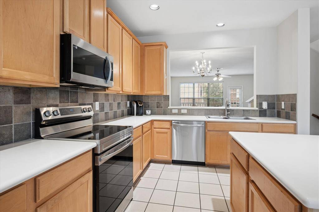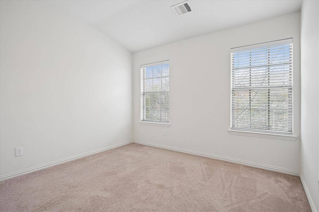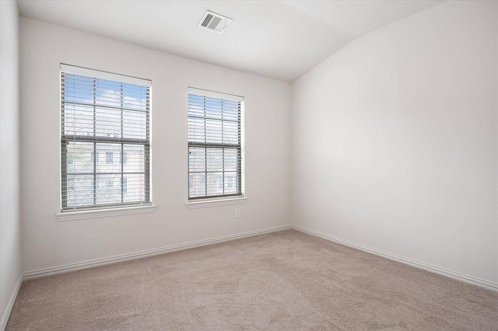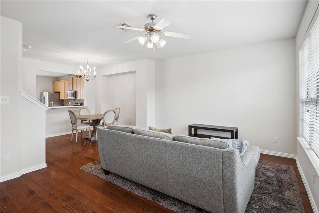 Great price for this well maintained executive townhome in popular Hunters Ridge community by original owner. Newer appliances, including refrigerator, microwave, stove, dishwasher, HVAC, plus fresh paint throughout. First level guest suite includes cozy bedroom, full bath, living area with private exit to covered porch and long greenbelt. Second level features gleaming wood floors and open floor plan living-dining-kitchen. Eat-in kitchen has island breakfast bar topped with smooth surfaces plus a large bay window with seat and a pantry. Also on second level are powder room, closet, and private balcony overlooking views of greenbelt. On Third level are split-plan bedroomsl; primary bedroom has well-appointed ensuite bath and a huge walk-in closet. A laundry room with full-size washer and dryer and full bath are also on third level. Zoned AC-heat allows even temperature contraol for all levels. Attached 2-car garage has epoxy flooring and spacious storage closet. Walk to community swimming pool, clubhouse, and mail gazebo. Enjoy quick access to I-635, SH 161, and SH 114 and to the numerous nearby corporate office centers plus shopping, restaurant and entertainment opportunities in Las Colinas.