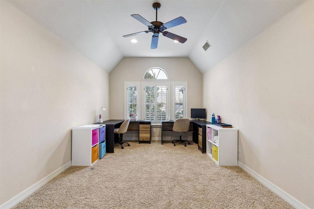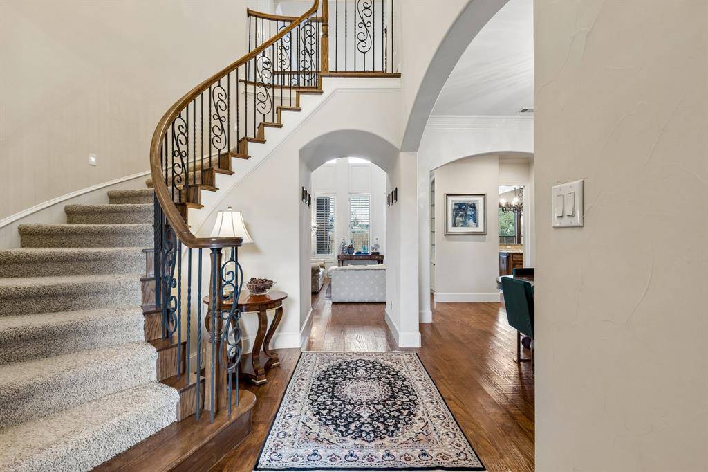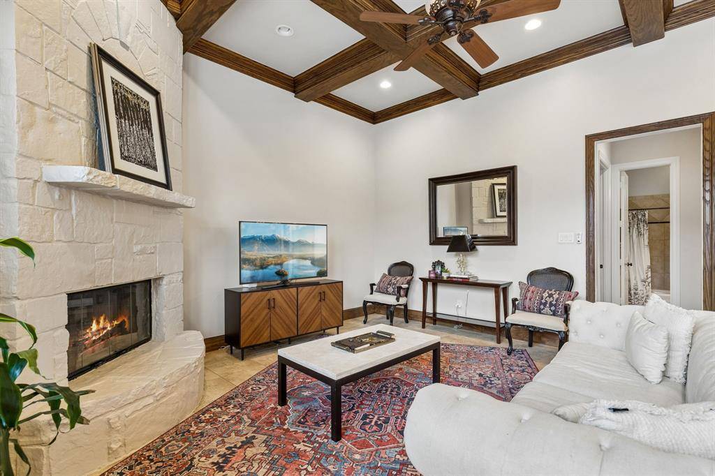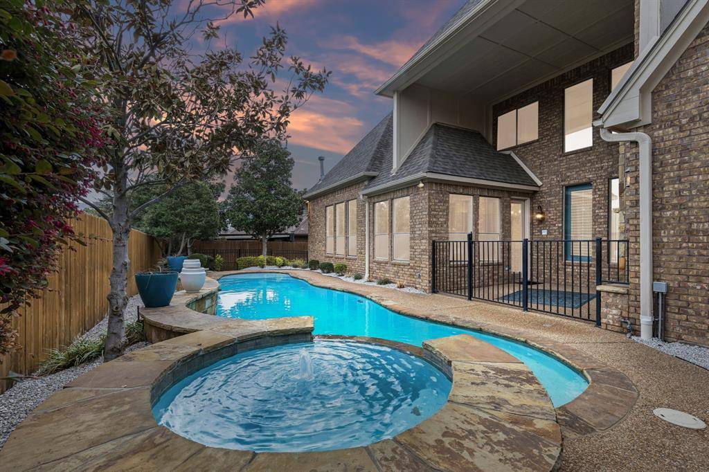 Welcome to 1640 Tuscan Ridge Circle, an elegantly updated residence in Southlake offering 4 bedrooms, 3 bathrooms, and approximately 3,740 square feet of thoughtfully designed living space. Built in 2006 and carefully maintained, this home blends classic architectural detail with modern updates and a highly functional layout suited for everyday comfort and entertaining. Inside, expansive light-filled rooms are enhanced by hand-scraped hardwood flooring and extensive crown molding that add warmth and character throughout the main living areas. The open-concept kitchen and living space create a natural gathering point with granite countertops, abundant cabinetry, generous prep space, and clear sightlines into the primary living area. A private executive study provides a refined work-from-home environment, while the oversized media room and spacious game room offer flexible areas for recreation, movie nights, or creative pursuits. The floor plan includes both the primary suite and a secondary bedroom on the first level, providing additional flexibility for guests or workspace needs. The newly renovated primary bathroom delivers a spa-inspired retreat with modern finishes and a calming atmosphere designed for relaxation. Large windows throughout the home invite natural light and create an open, welcoming ambiance. Outdoor living elevates the property with a backyard designed for entertaining, featuring a covered patio, outdoor kitchen, fireplace seating area, and a beautiful swimming pool with a newly installed variable-speed pump motor for improved efficiency and performance. Located minutes from Southlake Town Square, this property combines spacious interiors, thoughtful updates, and a resort-style backyard environment highly sought after in the Southlake market. Exceptional space for hosting and relaxation.
