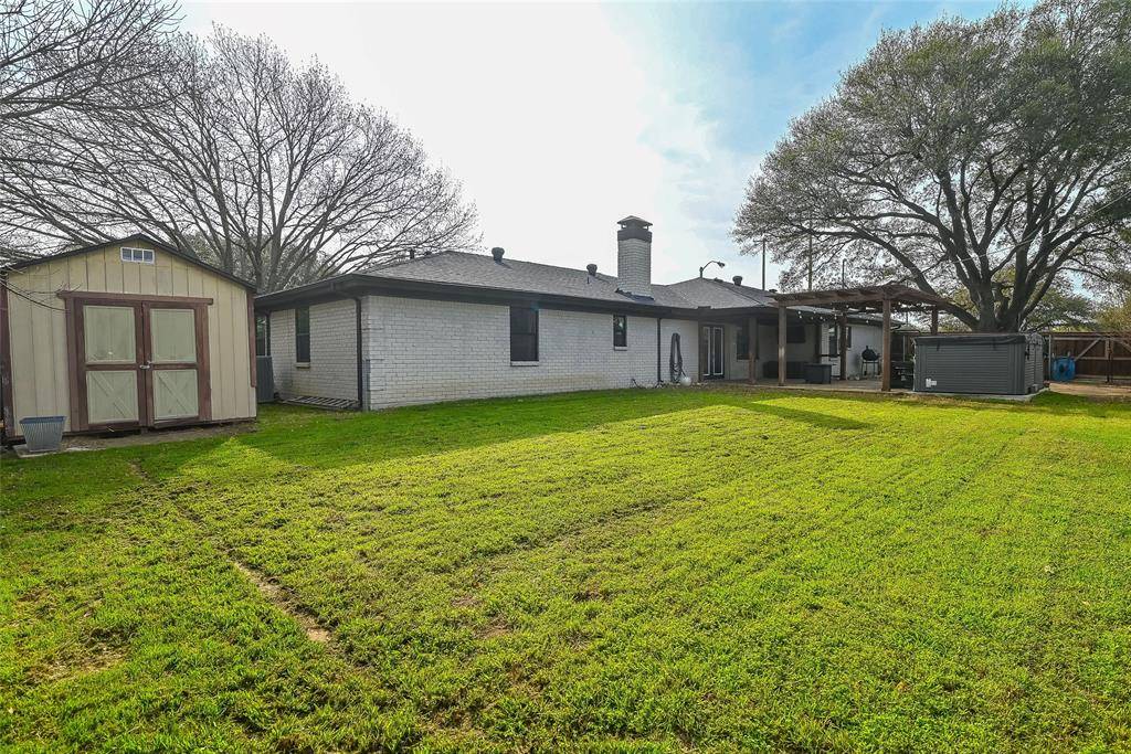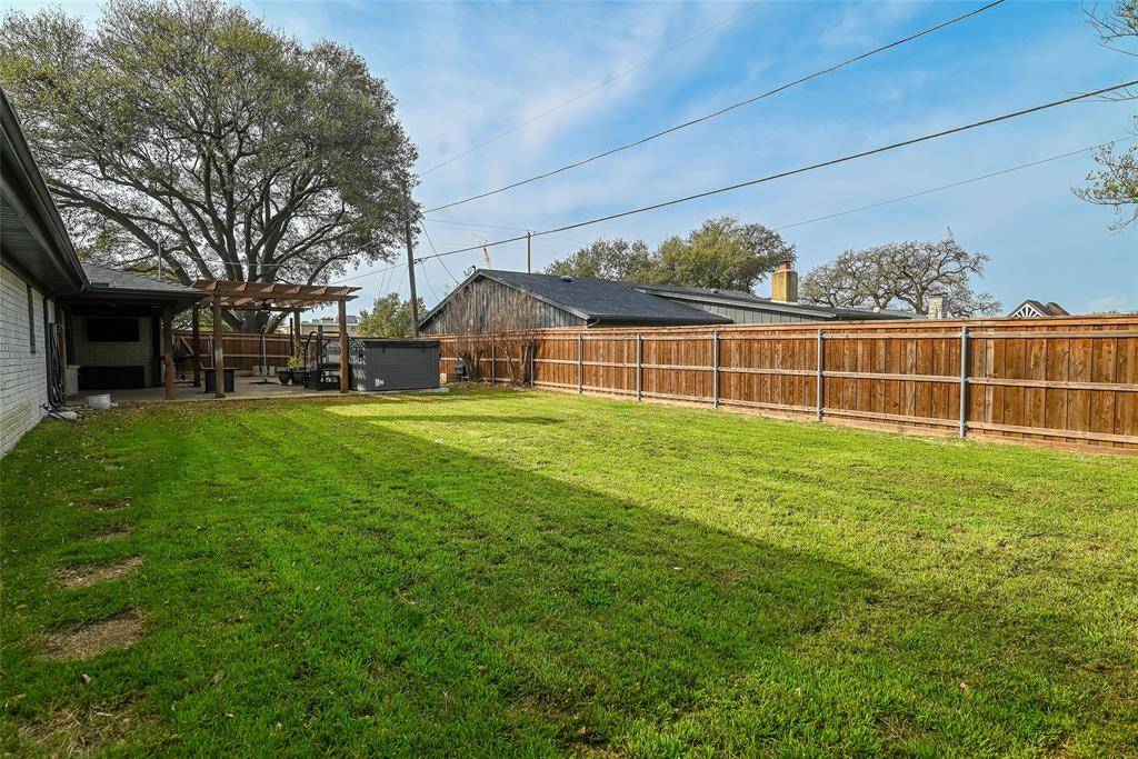 This updated and well-maintained home in HEB ISD is a MUST SEE! Entertaining is easy in this open floorplan featuring a large living, updated kitchen, and large backyard! The kitchen features granite counters, double oven, Thermador gas cooktop, microwave, and more! The kitchen is open to the living and breakfast areas and flows to the backyard featuring a large covered patio, custom pergola, shed, and swim spa! The backyard has plenty of grass for play and mature trees. An additional living and dining room off the kitchen allow for plenty of space! The primary bedroom is oversized and has an ensuite bathroom featuring a deluxe soaking tub, vanity, and walk in closet. The primary bath also has a fully built in safe room that doubles as a second closet. Two additional bedrooms with a jack and jill bath and large closets are down the hall. The fourth bedroom can double as an office and features a built in desk and large closet. The laundry room has lots of space! A two car garage on the side of the home has ample room for parking. The owners have maintained the home well. Recent updates include new roof and gutters (2022), new HVAC system (2023), new cedar fence (2021), new windows (2023), new front door (2024), new garage door (2024). The home is within walking distance to Bedford Junior High and LD Bell! Quick access to major transit routes and world class dining and shopping. Don't miss this great home!