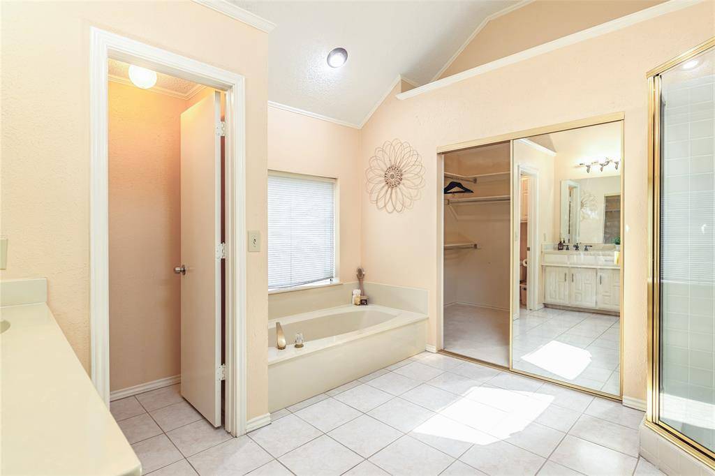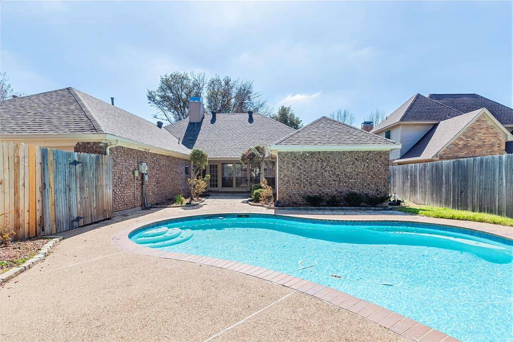 This Bedford beauty checks all the boxes! Mature trees and a shady front porch provide lots of curb appeal and welcome you to step into a bright airy space with wonderful natural light . Beautifully updated with so much room - a large kitchen, 4 bedrooms, 3 full baths, 2 living rooms, 2 dining rooms- this home is very likely to end your search! First, the remodeled kitchen features extensive beveled-edge granite countertops, new specialty cabinets for easy organization, soft-close cabinets and drawers, as well as a brand new microwave and dishwasher. When it comes to entertaining, multiple living and dining spaces guarantee plenty of room for get-togethers! You'll have a large breakfast area with convenient access to a covered side porch for easy grocery unloading. The kitchen also opens to a large second living area which features a see-through fireplace that is shared by the family room. Moving to the bedrooms, two of them share a Jack-and-Jill bath with dual vanities and each boasts a walk-in closet. When family comes to visit, not to worry! There is a separate guest suite complete with a full bath and pool access. Finally, the spacious primary suite includes patio access, a large bright bathroom with skylight, dual vanities, separate shower, soaking tub, and a spacious walk-in closet. Last but not least, the backyard offers a welcome retreat from the Texas heat - relaxing and grilling on the covered patio and cooling off in the in-ground pool will be the highlight of the day! Texas size garage will hold 2 vehicles easily. Furniture, fridge, washer and dryer negotiable.