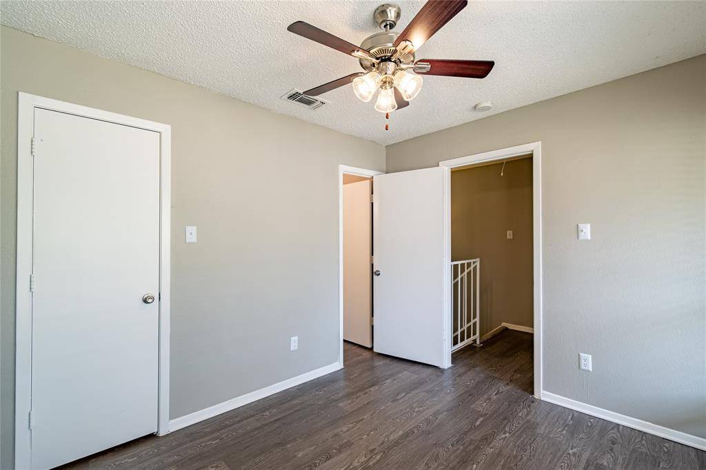 Recently upgraded 2-2.5 Fourplex in Hurst, HEB ISD! Spacious living area has a classic brick woodburning fireplace & lovely built-ins. Nice sized dining area, great kitchen has a window that overlooks the family room. Large master suite has a fabulous balcony, his & hers closets & private bath with walk-in shower. Second bath has extra vanity space & full shower-tub. Cute half bath on first floor has built-ins. Both bedrooms & two baths on second floor. fresh paint and new floors. One car covered carport. Great location near DFW Air port, Parks, shopping & restaurants!