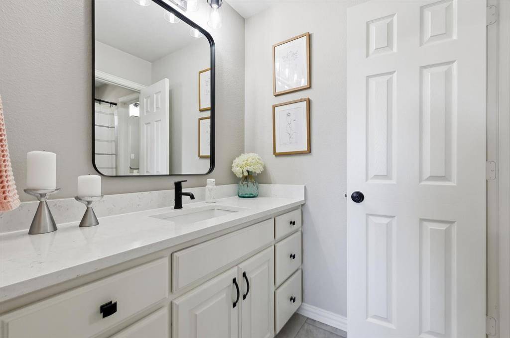 This updated home features a bright open floorplan designed for everyday comfort and entertaining. A major remodel completed in 2021 brought extensive improvements throughout the home including quartz countertops, updated lighting, new bathroom fixtures, new sinks and mirrors, fresh interior and exterior paint, and new tile flooring in the kitchen, dining, laundry, and bathrooms.