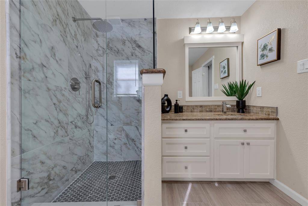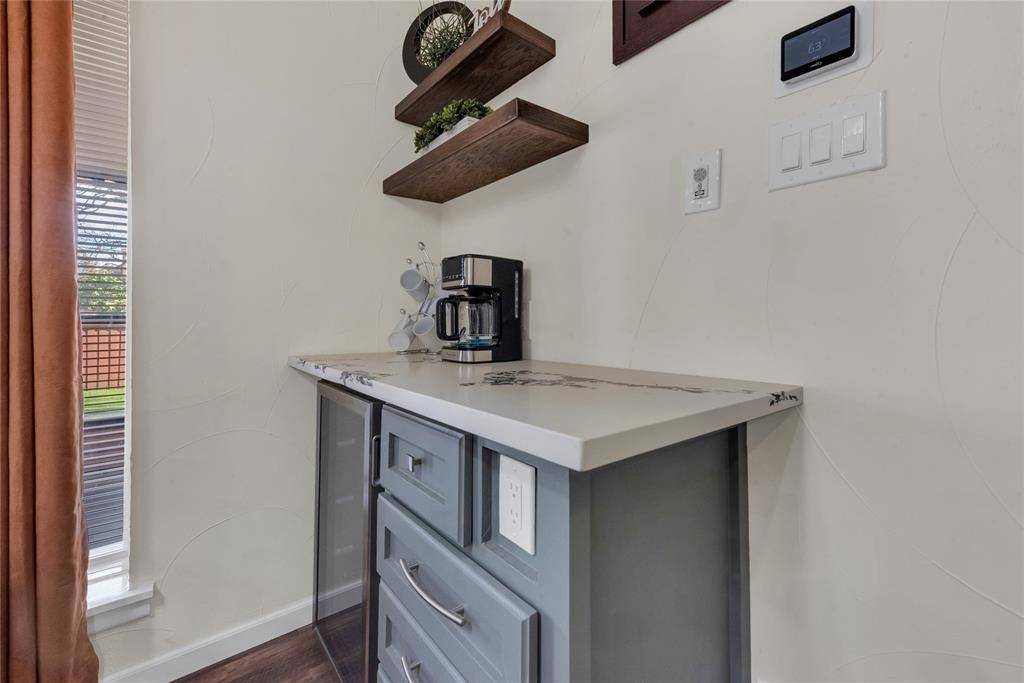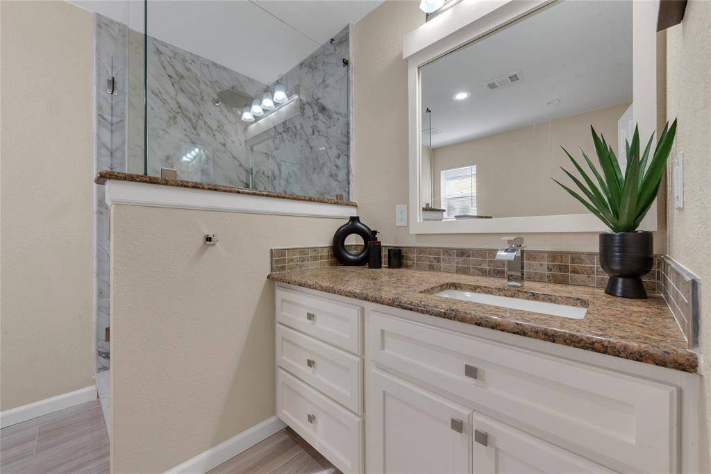 Charming and beautifully remodeled mid-century ranch in the heart of Hurst. This move-in ready home is made for entertaining with an open floor plan that's light-filled and flows seamlessly from room to room. Stylish open kitchen with a HUGE island that can seat up to 7 guests, modern cabinetry and sleek quartz countertops. Living room with vaulted beam ceiling and gorgeous wood-burning fireplace.The home blends classic charm with today's sought after updates for comfortable, everyday living. Enjoy 3 spacious split bedrooms, 2 updated baths, and a generous size backyard with mature trees perfect for relaxing. Bonus features includes a large sunroom that's perfect for plant lovers or just relaxing with morning joe sips. And for the car buffs, the 2 garage newly coated with Polyaspartic concrete flake coating that makes oil spills and messes an easy clean-up. This beautiful home is almost equal commute to both downtown Fort Worth and Dallas, close to everything, and within walking distance to Bell High School. This home is a must see!