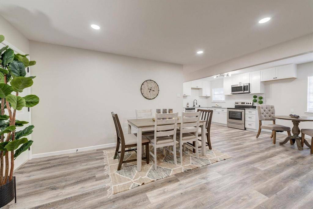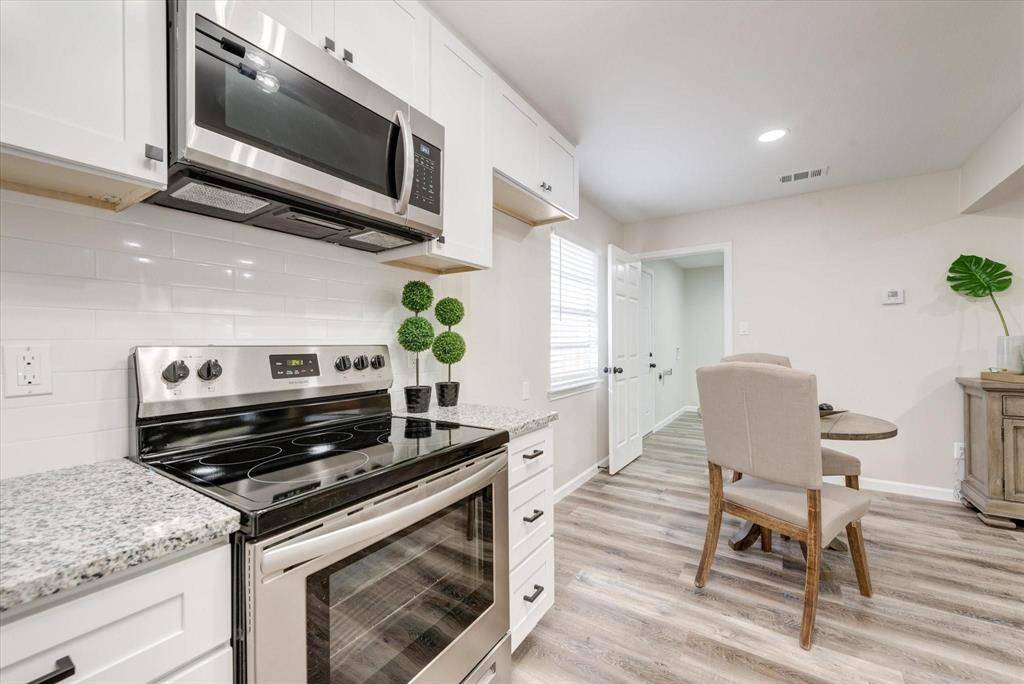 Very nice open concept 3 bedroom 1 bath fully renovated home in an established North Euless neighborhood. Recent updates include luxury vinyl plank floors, granite, cabinets, electrical, roof, carpet, stainless steel appliances, doors, LED lighting, oil rubbed bronze fixtures. Custom kitchen with soft close hinges and cabinets is a must see for any chef. Spa-like bathroom. Wood-burning fireplace. Separate utility room with washer and dryer hookup. Large backyard with additional 24x24 building. Pets considered on a case by case basis. NO SMOKING INSIDE. Renter insurance required.