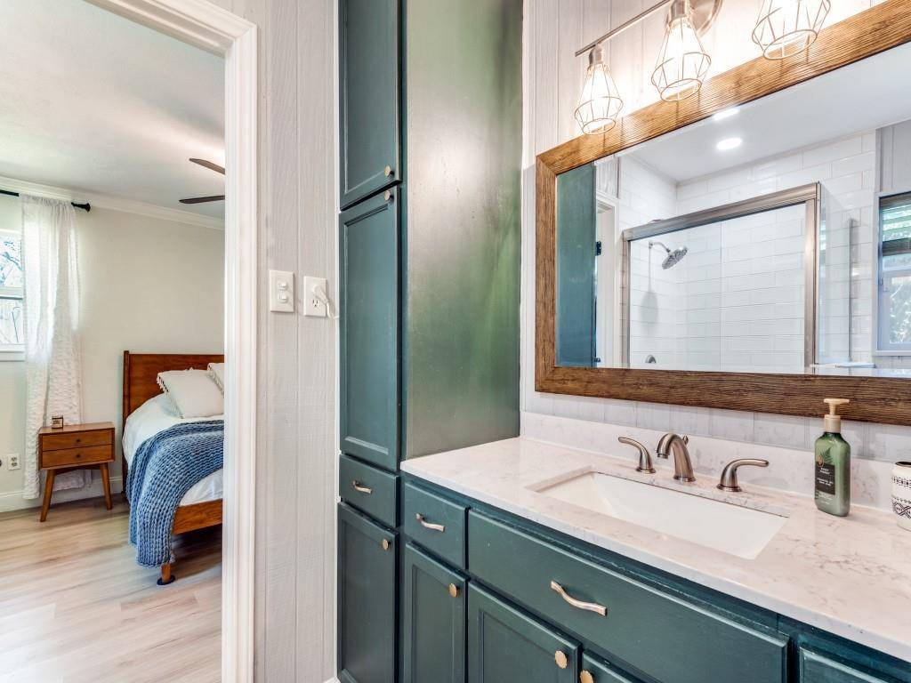 Beautifully renovated home full of character and style! Every detail hits the mark—from the soaring vaulted ceiling with a statement wood beam to the bright, open kitchen featuring a large island perfect for gathering. The home also offers a warm, inviting fireplace, tastefully updated bathrooms, and a spacious landscaped lot. A standout feature is the upgraded shed with electricity and AC unit historically has been set up as a workout space but easily adaptable as a home office, man cave, or she shed. . Designed with entertaining in mind, the layout flows effortlessly for both indoor and outdoor living. Situated in a desirable neighborhood known for its mature trees, you're just minutes from local dining and Smith Barfield Park with convenient access to major highways, commuting is a breeze—plus you're less than 15 miles from DFW Airport and under 2 miles from all the shopping, dining, and entertainment at Northeast Mall. Upgrades include roof in 2022, Heat and Air in 2025, new electric panel and pigtails throughout 2024, Dishwasher 2025