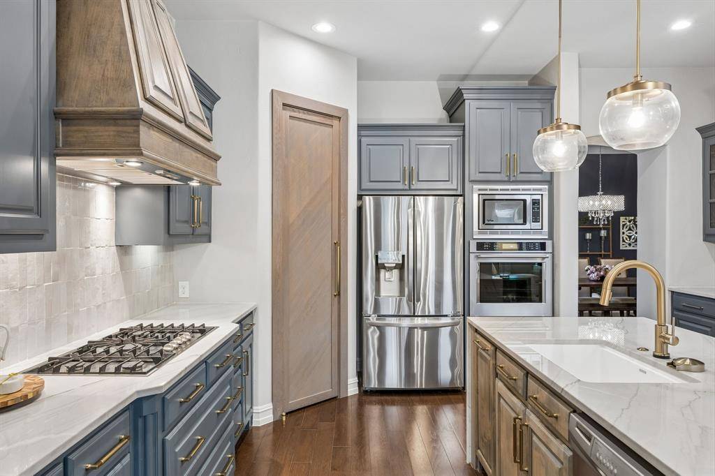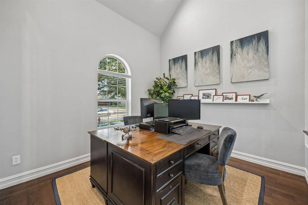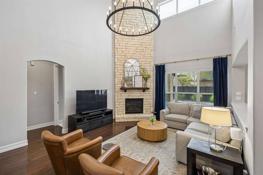 Step through a beautiful custom iron door into this stunning Trophy Club residence, where luxury meets thoughtful design. The light-filled interior featuring rich hardwood floors, soaring ceilings, and thoughtfully curated finishes throughout will not disappoint! The heart of the home features a stunning kitchen with high-end appliances, waterfall island with quartzite, custom cabinetry, 5 burner gas cooktop, double ovens and elegant pendant lighting perfect for both everyday living and entertaining. The spacious living room offers a warm yet sophisticated atmosphere with a striking gas stone fireplace, abundant natural light, and seamless flow to the outdoor living space. A dedicated home office, dining area, game-room and media room provide room for gathering, working, or relaxing. The recently updated primary suite is a true retreat, highlighted by a beautifully renovated spa-like bath featuring modern finishes, upgraded fixtures, and a serene, luxurious feel. Secondary bedroom with en-suite bath also located on the first floor. Upstairs has 3 bedrooms, game-room and media room. Media room equipped with projector and screen, perfect for movie nights or watching your favorite sporting events!