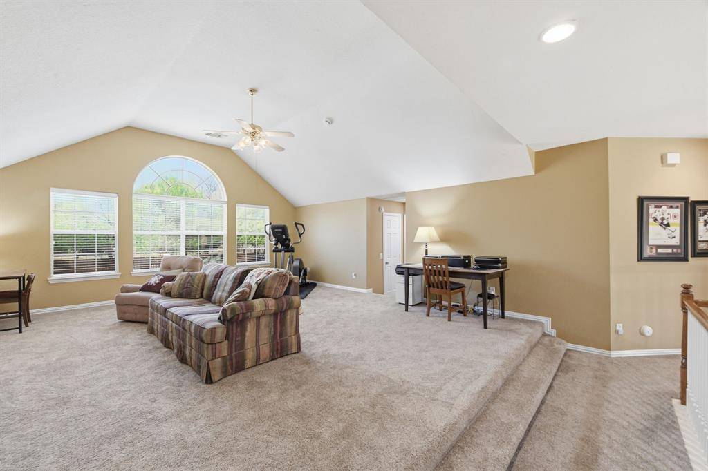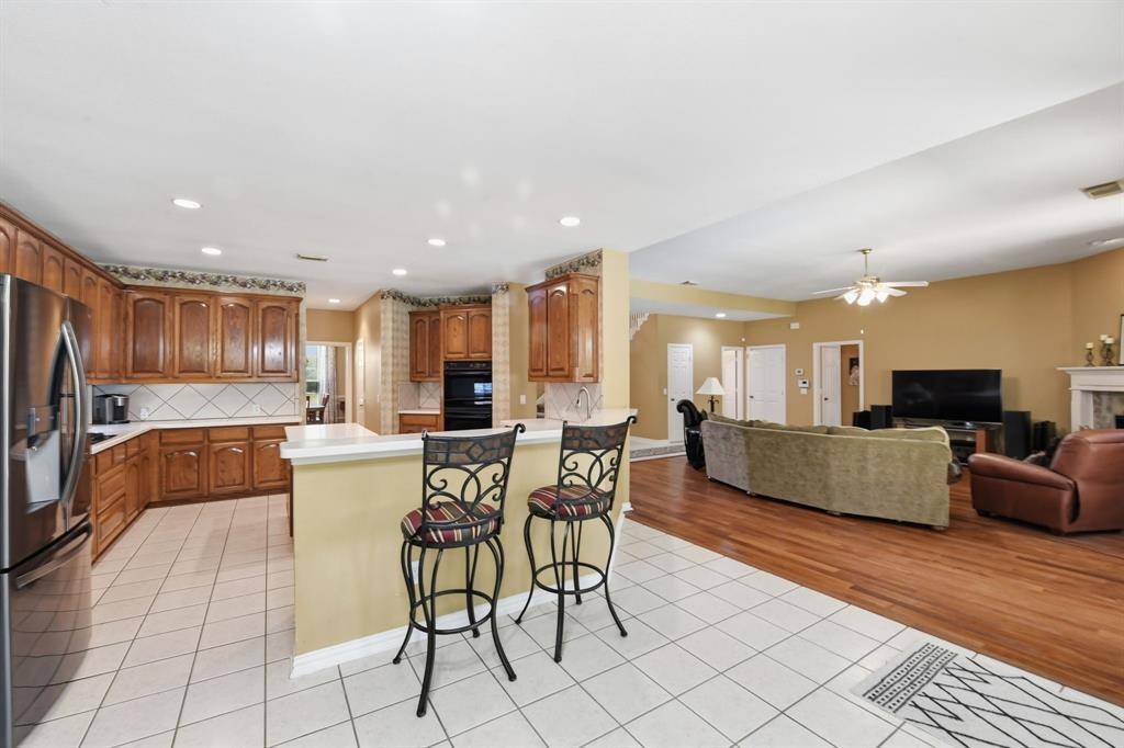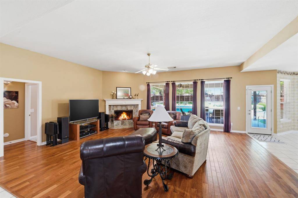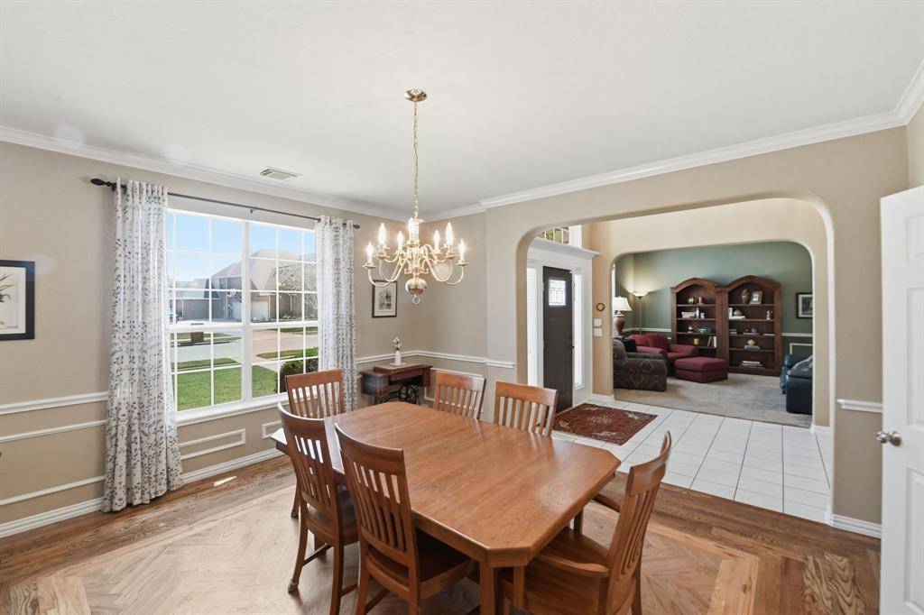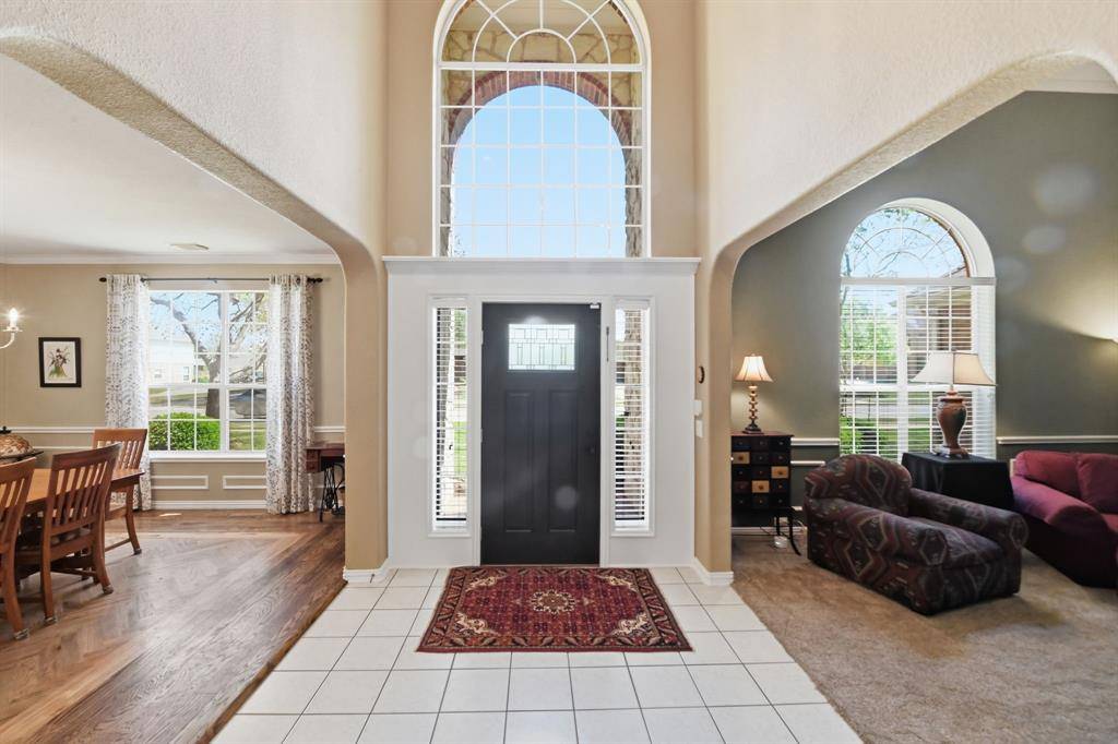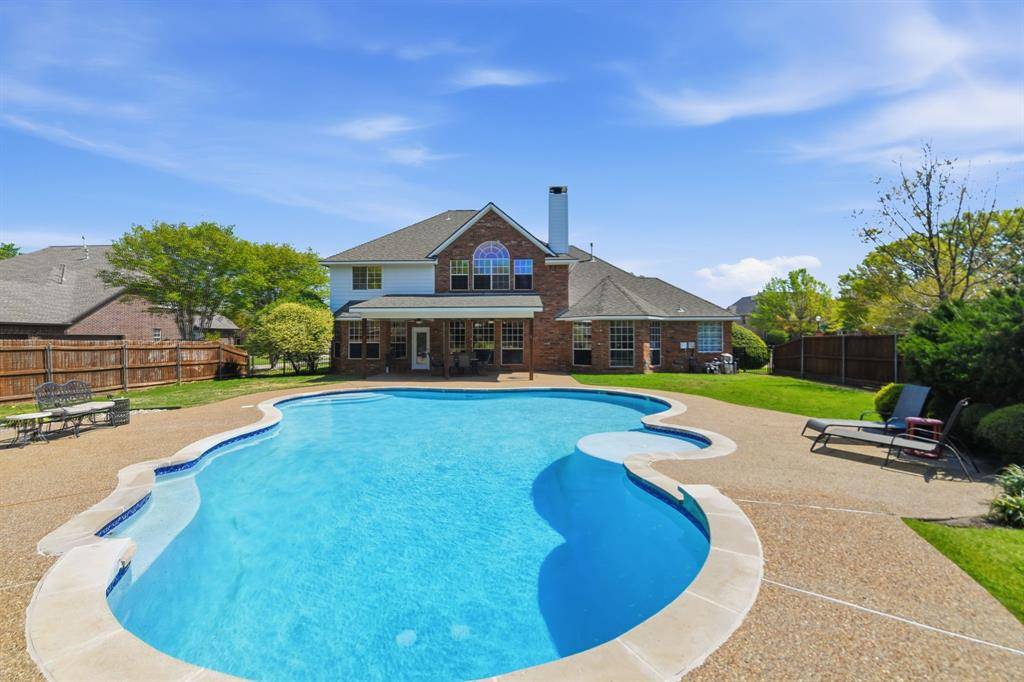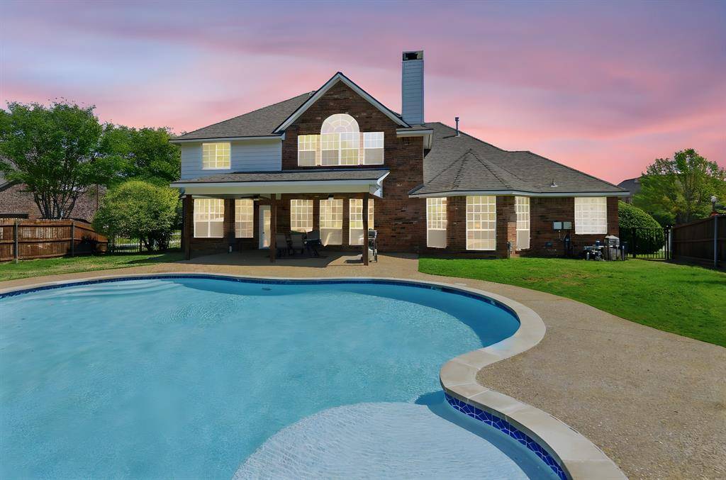 This spacious home, highlighted by a stately stone and a decorative brick facade, is located on a premier .46-acre corner lot in the established Overton Ridge Addition of Keller. With a functional layout, the two-story floor plan offers a formal living room or optional study, an elegant dining area, a culinary kitchen with stately 42-inch fluted oak cabinets, breakfast bar, a center island, a gas cook-top, double oven, and a charming breakfast nook before windows; an oversized family room, four generously-sized bedrooms with walk-in closets, three full and one half bathrooms, a 2nd level game room, utility area, and an attached three-car garage. Key upgrades of the home include gracious windows, rich hardwood flooring, custom built-ins, tall ceilings, a traditional gas fireplace in the family room, a large walk-in attic with Radiant Barrier insulation and so much more. Located away from the traffic areas of the home, the 1st floor primary suite is the perfect retreat at the end of the day. This peaceful room boasts a sitting area before bay windows and a spa-inspired bathroom with granite counters. Three additional bedrooms and the game room are sited on the second level of the home. Ideal for alfresco relaxation, the large backyard hosts a covered patio overlooking a sparkling, saltwater 38K gallon diving pool and plenty of room for outdoor play. Additional amenities include a newer roof, upgraded carpet and tile floors, and a replaced AC in the primary bedroom. Overton Ridge residents enjoy access to a neighborhood park and heavily treed walking paths. This impressive home feeds the award-winning Keller ISD and is located a short commute to DFW International Airport, local eateries and upscale shopping.