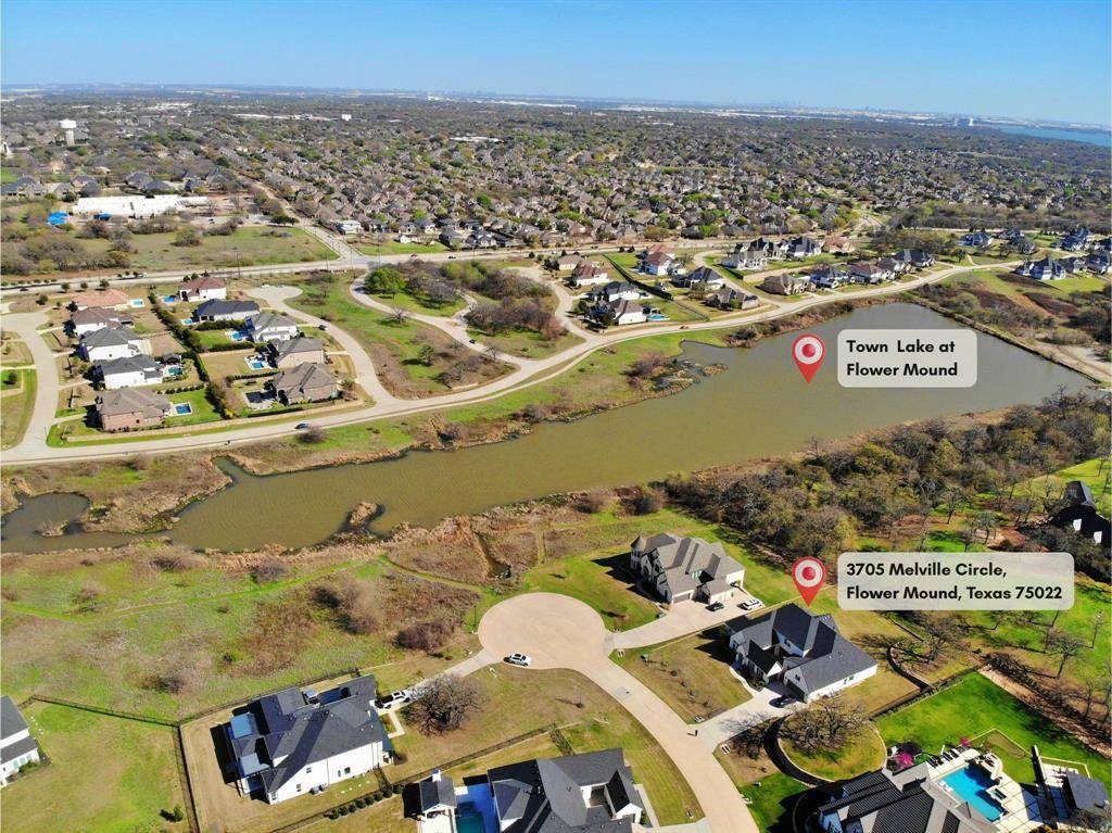 Stunning Toll Brothers home on a premium lakeview cul-de-sac lot 0.67 ACRES in the highly sought-after Townlake community! Welcome to 3705 Melville Ct, offering serene lake views and a peaceful, private setting while blending upscale living with exceptional value. This beautifully upgraded home features a charming courtyard-style design with a large covered front porch and an extended covered back patio—perfect for relaxing, entertaining. Designed for flexibility, the home offers a rare 3-bedroom suite layout on the first floor, ideal for multi-generational living, guests, or a private office setup. The open-concept layout showcases a gourmet kitchen with a premium appliance package, oversized center island, and abundant natural light flowing into the dining and living areas. Hardwood flooring throughout the main living areas on the first floor adds warmth and elegance. A lengthy list of builder upgrades and meticulous maintenance make this home truly move-in ready. Situated on one of the best lots in the community, this property offers privacy, scenic surroundings, and strong curb appeal. Residents enjoy walking trails, water features, and a vibrant neighborhood lifestyle. Zoned to a highly acclaimed Lewisville ISD, this home offers excellent long-term value. A rare opportunity to own a luxury lakeview home with extensive upgrades on a premium lot—where comfort, elegance, and tranquility meet. No house right behind it, very nice open view from the backyard.