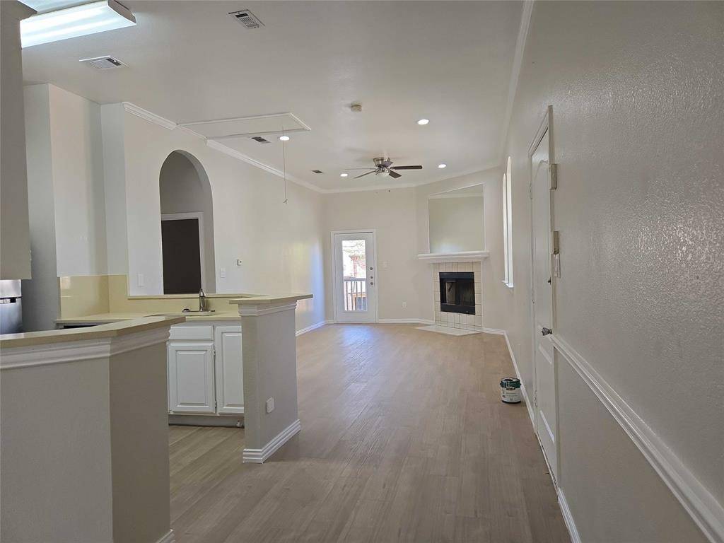 Beautifully remodeled second-floor unit featuring fresh paint, updated fixtures, luxury wood-look vinyl flooring, and granite countertops in the kitchen and bathrooms. The home offers a cozy wood-burning fireplace and a spacious living room with an adjoining bonus area ideal for dining, a home office, study, or more. The two bedrooms are split for added privacy, and each has its own dedicated bathroom. The attached garage includes an automatic door opener for convenient access. A refrigerator, washer, and dryer are also included with the unit.