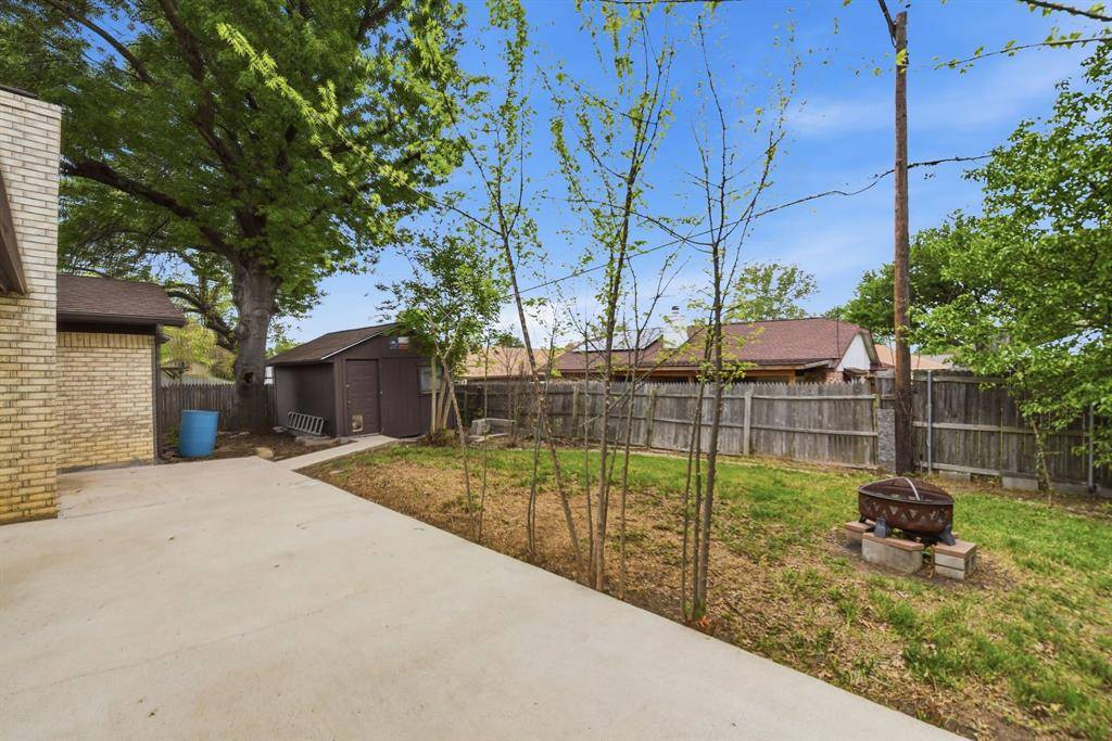 The backyard offers an extended covered patio along with a shop equipped with electricity and multiple outlets, providing additional workspace or storage. Additional concrete added onto the driveway provides extra parking space for vehicles, trailers, or recreational use. Additional features include a 2-car garage, central HVAC, and no HOA.