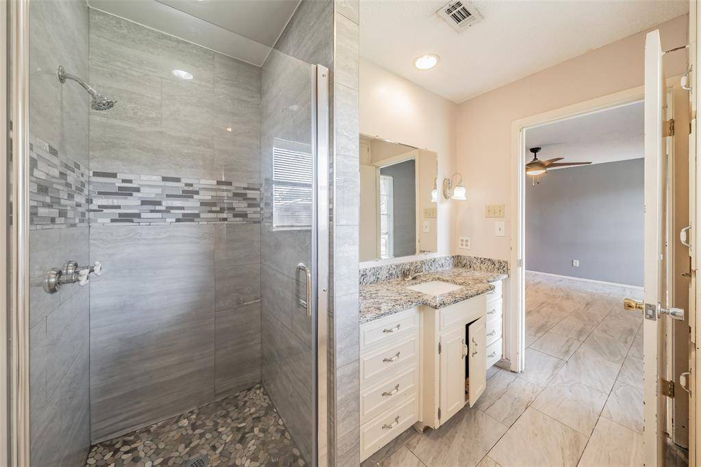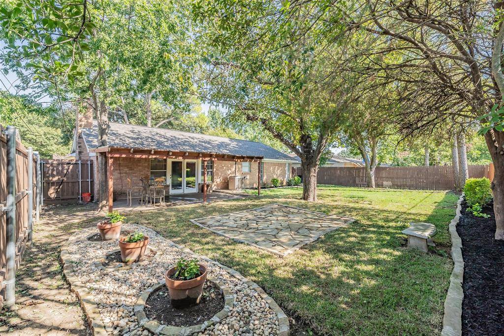 Designed for everyday comfort and easy living, this well-cared-for one-story home in HEB ISD offers 3 bedrooms, 2 full baths, and a functional, easy-flow layout. The brick exterior and side-facing double garage provide excellent curb appeal and added privacy. Beautiful landscaping and thoughtful design are highlighted by a large mature tree in the front yard, creating a welcoming first impression. Inside, the home features modern tile flooring throughout and ceiling fans in every room for added comfort. The kitchen offers a gas stove, granite countertops, and an abundance of cabinet space, opening seamlessly to a spacious family room anchored by a custom-paneled fireplace—creating a comfortable space for both everyday living and entertaining.