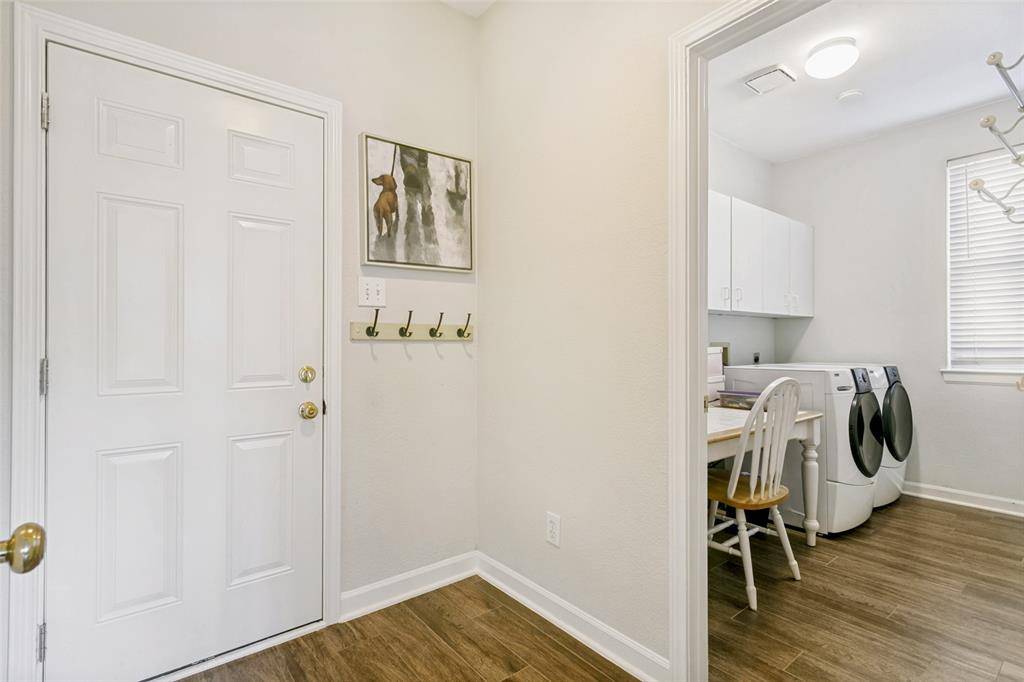 Enjoy the beautifully maintained yard with Zoysia grass, Rain Bird sprinkler system front and back, mature trees professionally trimmed, and a stone walkway leading from the driveway to the backyard. Exterior updates include fresh paint (2023), newer front and back doors with storm door, and replaced garage door.
