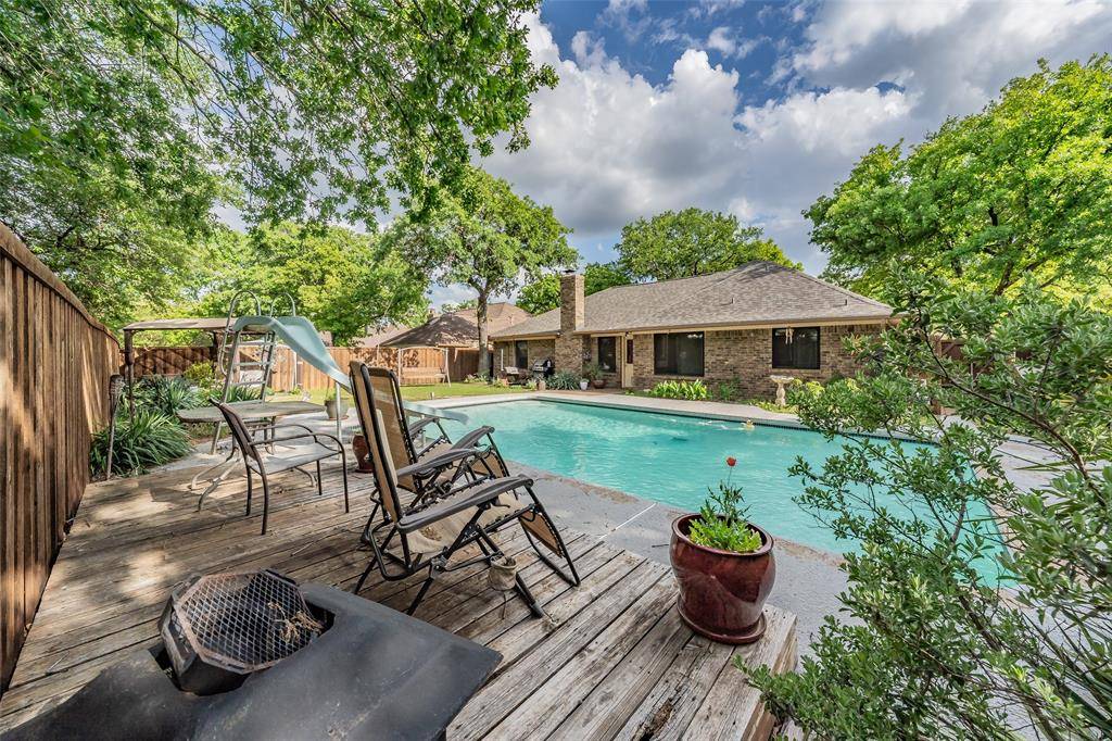 Welcome to this well maintained 4 bedroom, 2 bath brick home located in the heart of North Richland Hills, offering comfort, functionality, and major system updates already done for you. This home stands out because the big ticket items are already taken care of. With newer systems and energy efficient improvements, it's move in ready with long term value built in. Inside, you'll find a spacious layout with vaulted ceilings in both the main living area and primary bedroom, creating an open, comfortable feel. The living room features a wood burning fireplace, perfect for everyday living and entertaining. The eat-in kitchen offers plenty of cabinet space and storage to keep everything organized. The secondary bathroom was updated in 2021 and includes a walk-in shower with a lifetime warranty, clean, modern, and built to last. Step outside to a backyard designed for Texas living. Enjoy the in-ground pool, extended patio, and a covered pergola with an attached wood deck, creating multiple spaces to relax, entertain, and unwind. Exterior walkway lighting adds both safety and curb appeal as you arrive home. Key upgrades include Roof replaced in 2023, 18 inches of insulation added in 2023 for improved energy efficiency, Anderson windows 2021 with lifetime warranty throughout, Hot water heater replaced in 2022, Electrical panel updated approximately 4 years ago, including a dedicated outlet connection for a portable generator, providing added convenience and preparedness, new pool pump installed. Located in an established neighborhood with mature trees and access to great schools, this home offers both convenience and a strong sense of community. If you're looking for a home where the major updates are already done and the lifestyle matches, this one delivers. Buyer and Buyers agent to verify all information.
