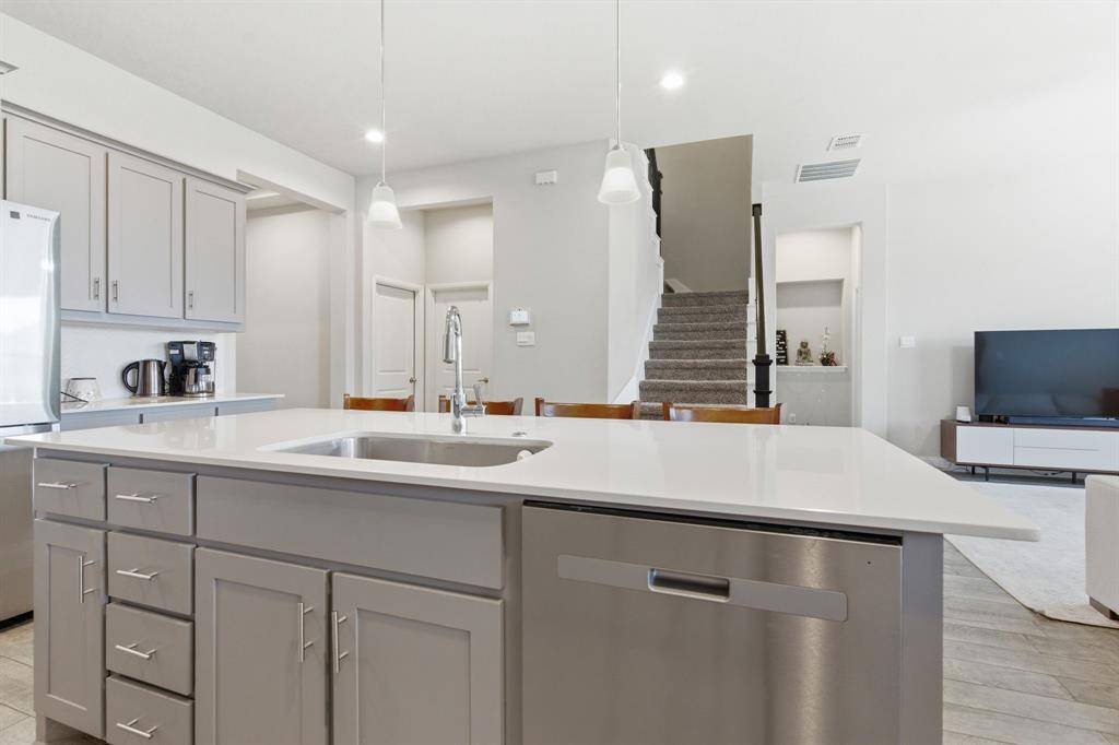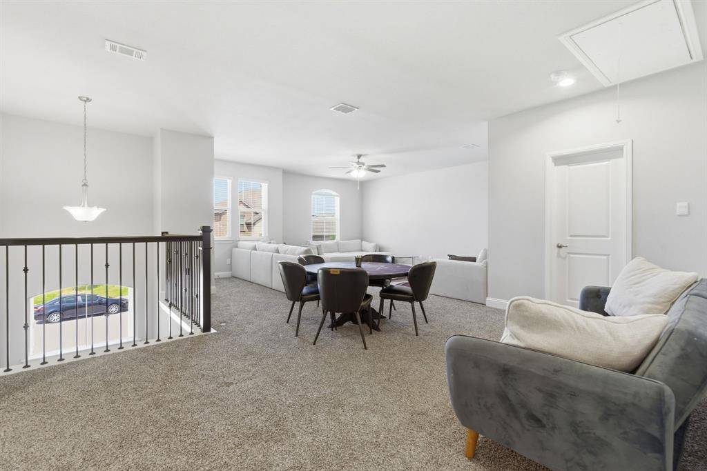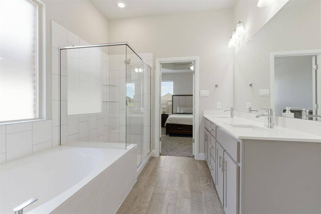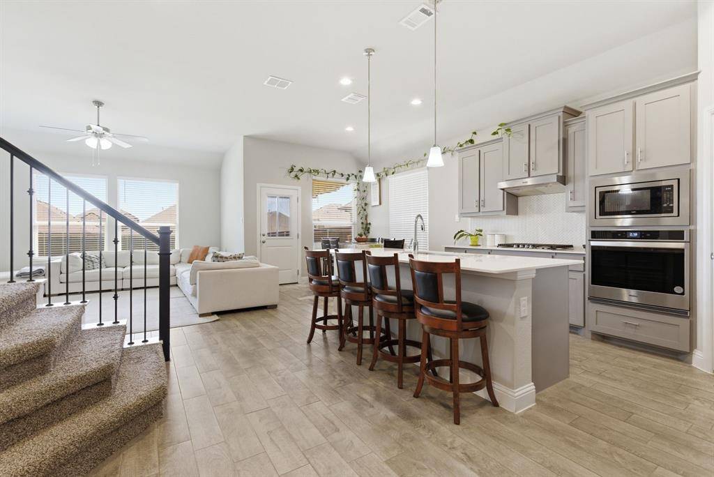 Stunning new two-story home in the Avalon community of Argyle, built by D.R. Horton, featuring the Palm floorplan (Elevation B). This spacious home offers 5 bedrooms, 4 full bathrooms, a large game room, and an additional loft area. The open-concept layout includes a generous living and dining space that flows into a well-appointed kitchen with a large island, quartz countertops, built-in stainless steel appliances, gas cooktop, 42-inch upper cabinets, pot and pan drawers, pendant lighting, and a walk-in pantry. The primary suite is located on the main level and includes a dual-sink vanity, garden tub, separate oversized shower with built-in seat, and a large walk-in closet.Interior features include designer tile flooring throughout the entry, hallways, wet areas, and family room, along with quartz countertops in all bathrooms. The home is equipped with smart home technology, a tankless water heater, and window blinds.Exterior features include an extended covered back patio, full sprinkler system, gutters, front coach lighting, and a professionally designed landscaping package Conveniently located near Downtown Denton, DFW Airport, Texas Motor Speedway, and Tanger Outlets Fort Worth, with easy access to shopping, dining, and major highways.