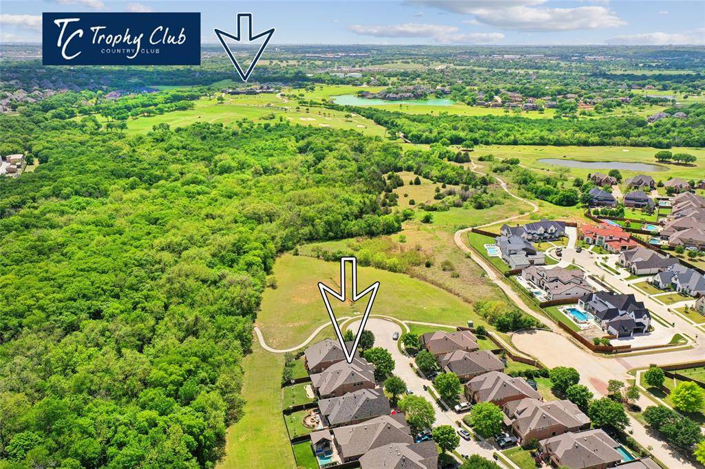 Located in the highly sought-after golf community of Trophy Club, this beautifully maintained one-owner home is tucked near the end of a quiet cul-de-sac and backs to the U.S. Army Corps of Engineers land, offering peaceful, private views. Thoughtfully designed for both everyday living and entertaining, the home features 3 bedrooms, 3.5 baths, and a flexible layout with a dedicated office showcasing a coffered ceiling and built-in bookcases. The living room is filled with natural light from a wall of windows and anchored by a white stone gas fireplace, creating a warm and inviting space. The kitchen opens seamlessly to a bright breakfast area and offers a large granite island, 4-burner gas cooktop, and oven, making it ideal for gathering and entertaining, with easy access to the extended flagstone patio for indoor-outdoor dining. The downstairs primary suite is a private retreat with backyard views, featuring dual vanities with granite countertops, a jetted tub, and a separate walk-in shower. Rich wood flooring runs throughout the main level, adding warmth and continuity. Upstairs includes two spacious secondary bedrooms, a full bath, and a large game room offering additional living space. Notable updates include all new windows with a lifetime transferable warranty ($26,000), a new roof, and 1 of 2 Rinnai tankless hot water heaters was recently replaced. Ideally located just minutes from DFW Airport, Charles Schwab and Fidelity, and premier shopping and dining, this home offers the perfect blend of comfort, convenience, and location.