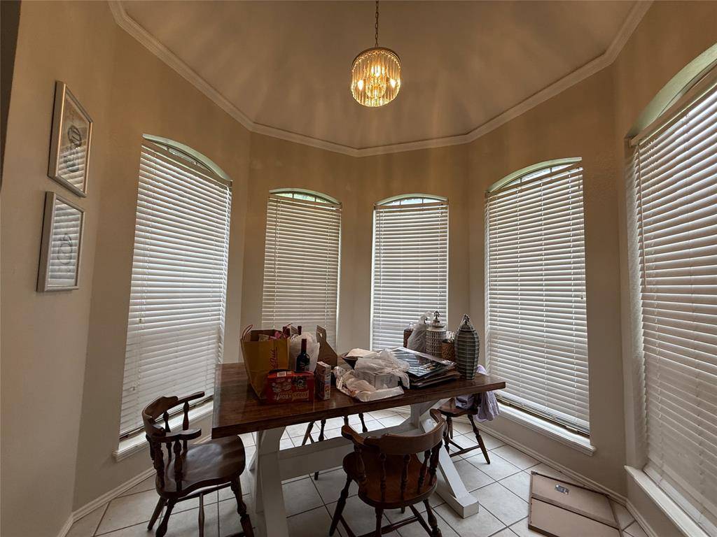 Situated on a desirable corner lot, this home features two spacious living rooms complimented with vaulted ceilings to create an open atmosphere. Elegant crown molding and wainscoting can be spotted throughout along with some recent fixture upgrades like faucets and remote controlled ceiling fans. This property also features a unique partial sunroom, perfect for relaxing or nurturing plants. Recent kitchen upgrades include granite counters, newer electric stove top, and stainless steel fridge. Kitchen is complimented with a designated breakfast nook and dining area to add flexibility to your dining and hosting needs. The thoughtfully designed layout includes three well-sized bedrooms with recessed ceilings and comfortable spacing between each room. The ensuite primary bathroom provides dual walk-in closets, dual sinks, soaking tub, and water closet along with skylights that fills the space with natural lighting.