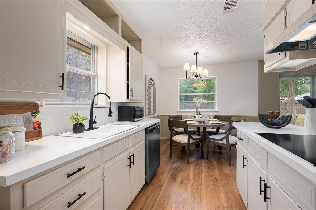 Experience comfort and convenience in the highly sought-after Hurst-Euless-Bedford ISD!!!! This move-in ready 4-bedroom, 2-bathroom home sits on a spacious lot and offers 1,374 square feet of inviting living space. Inside, you'll find fresh paint, new light fixtures, and new LVP flooring throughout, all complemented by a natural color palette that creates a warm and calming atmosphere. Step outside to enjoy a private fenced backyard with plenty of room for outdoor gatherings, play, or relaxing evenings at home. Attached two-car garage with an expanded driveway providing ample additional parking. With convenient access to DFW Airport, major highways, shopping, and local schools, this home offers the perfect blend of comfort and location.
