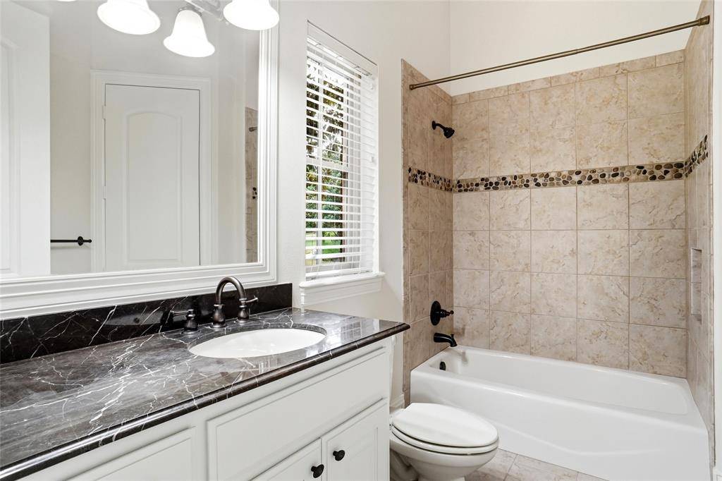 Built by award winning custom home builder, Jeffrey Homes, welcome to this beautiful home in the Palomar Estates of Southlake. Trends may come and trends may go, but beautiful nail-down hardwood floors, just beautifully refinished, along with natural Travertine stone flooring, say, “We're a timeless classic, and never go out of style.” Open floorplan with FOUR FIREPLACES! Family room with fireplace and builtins, Great Room with 2nd fireplace, Study with 3rd fireplace, with an 4th outdoor fireplace on large covered patio!