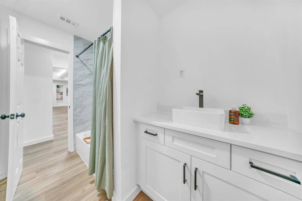 Welcome to this beautifully remodeled 3-bedroom, 2-bath home featuring a versatile bonus room—ideal for a home office, media room, fitness space, or flex use—plus a sparkling pool. The open-concept design showcases modern finishes throughout and a cozy fireplace anchoring the main living area. The updated kitchen features new cabinetry, quartz countertops, and brand-new appliances. Recent upgrades include luxury vinyl plank flooring, updated light fixtures, new plumbing fixtures, a new pool pump and filter, and fresh interior and exterior paint. Both bathrooms have been fully renovated with stylish, contemporary finishes. Major system updates provide added peace of mind, including a new HVAC system, roof, and gutters. Enjoy a private backyard retreat with a newly resurfaced and retiled pool, a pergola for outdoor relaxation, and a storage shed for added convenience. Conveniently located with easy access to Highways 121, 183, and I-820, this home offers excellent connectivity to Dallas, Fort Worth, and DFW Airport—ideal for commuters and everyday living.
