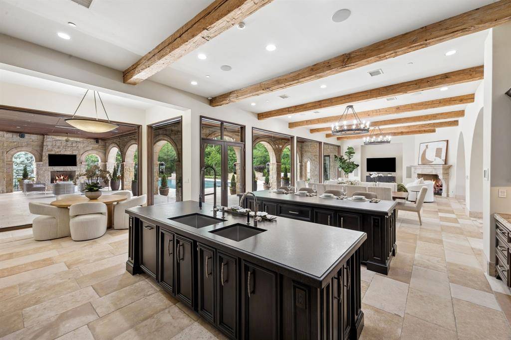 Stunning timeless Mediterranean estate, masterfully designed & built by Jauregui Architect & Builder. Pristinely set on almost 3 private, tree-filled acres, this estate combines the peaceful tranquility of mature native oaks, a babbling creek, natural areas & mature landscaping. Enter through the grand double iron gate to a paver-lined drive + circular motor court centered by a dramatic fountain. Once inside you are greeted with a perfect blend of classic craftsmanship & modern luxury, boasting extensive natural stone, gorgeous custom millwork, exceptional floor plan with curated highest-end finishes. The breathtaking Great room boasts a custom stone fireplace, wood-beamed ceilings, floor-to-ceiling Glass Windows capturing views of Outdoor Living & acreage beyond. The Chef's Kitchen offers double island layout, Wolf double range w ovens, double full-size Sub-Zero refrigeration w two freezer drawers, Butler's Pantry + walk-in Pantry. Designed for both everyday living and entertaining, the 1st level offers multiple living areas including a spacious Game Room, fully equipped Bar, billiards area & game alcove with wall of doors that open to patio + a private executive Study with detailed wainscoting. Retreat from the day to the beautiful Primary overlooking the pool & backyard oasis beyond, with an expansive spa Bath. Spacious, private Guest suite is also down. Upstairs you find 3 Bedrooms suites, Game Room, shared covered balcony, 23'x 23' Fitness room, large storage room ideal for craft or wrapping. The resort-style Outdoor patio spans over 1,400 square feet of covered living, complete with custom fireplace, fully-equipped outdoor kitchen w dual Big Green Eggs, gas grill, bev fridge & built in screens + more. Sparkling infinity-edge pool, spa, multiple fire features, walking paths, private water well, and Tennis Court at rear of the property completes this idyllic resort backyard. Located minutes from DFW Airport & Southlake Town Square. This is truly a Rare find!!!